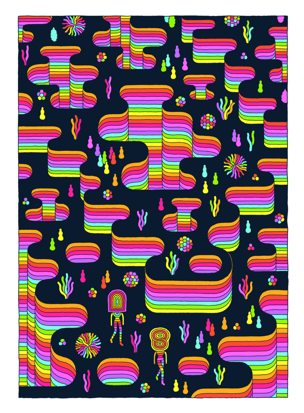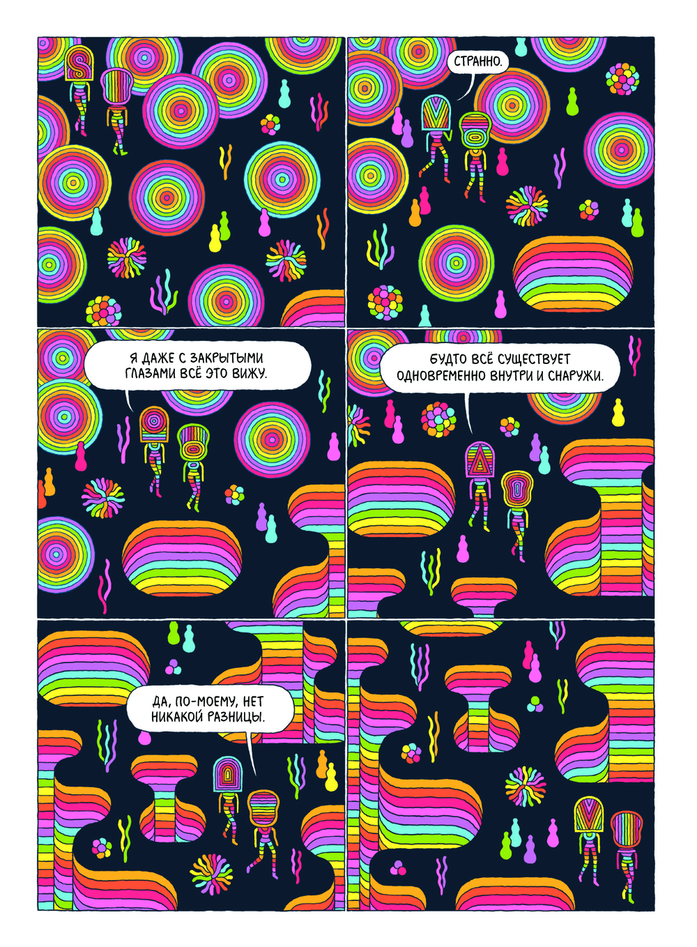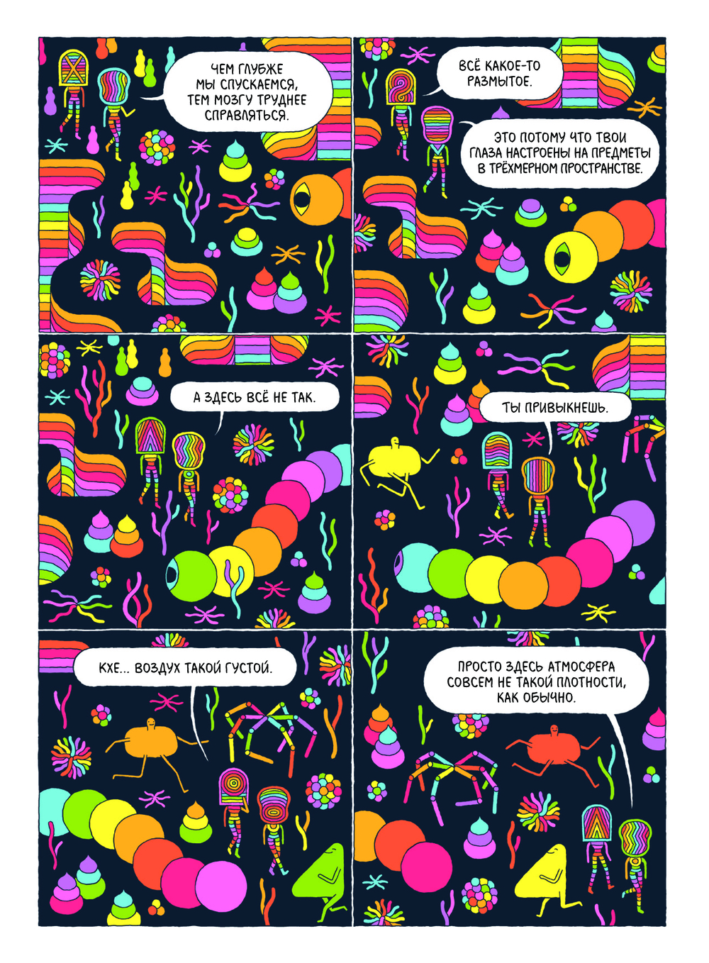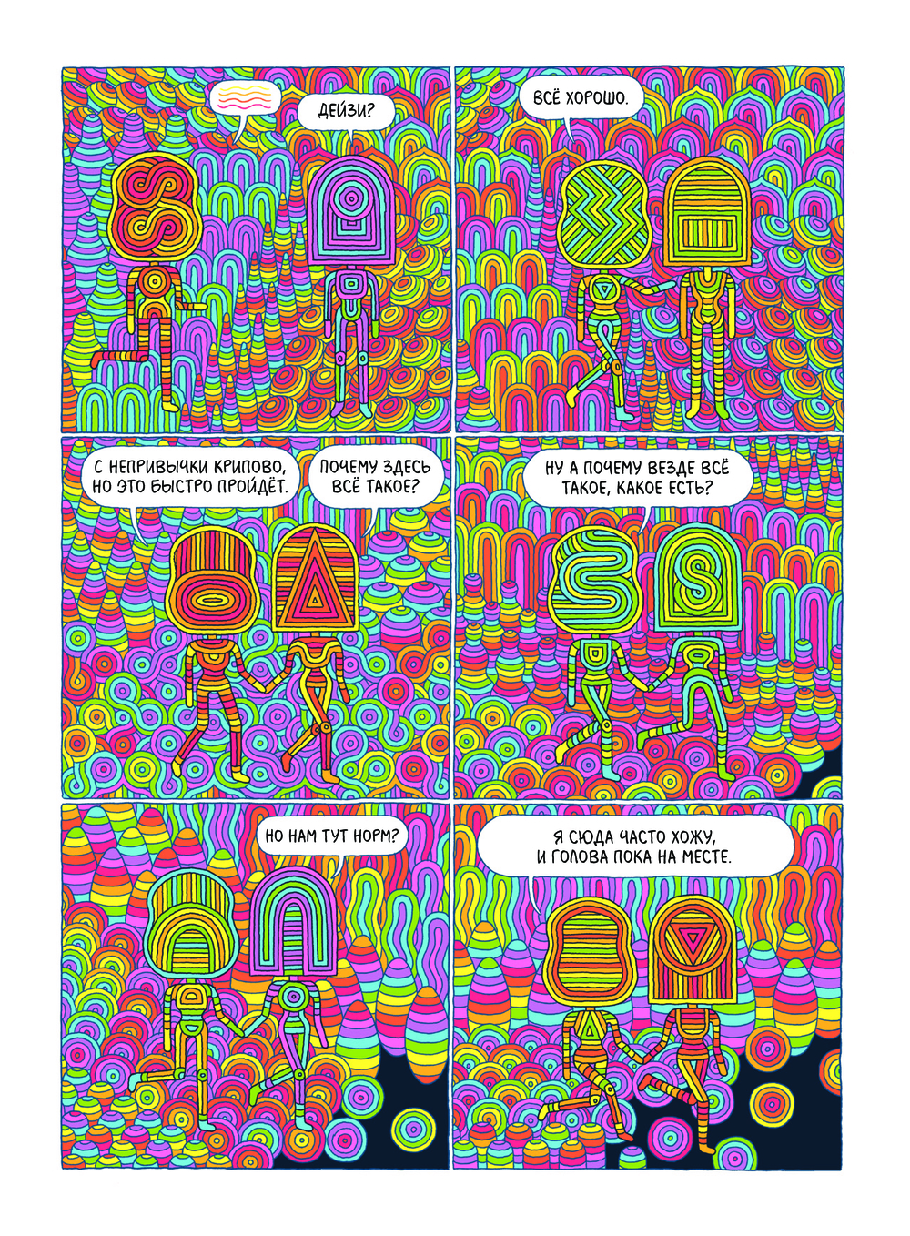 "Подпространство" – психоделическая метафора взросления от канадского художника Джесси Джейкобса, объединяющая элементы сюрреализма, подростковой драмы и философии. Каждый разворот этого произведения – визуальное пиршество, где тщательно проработанные детали и яркие цвета создают атмосферу, погружающую читателя в мир, который одновременно пугает и восхищает.