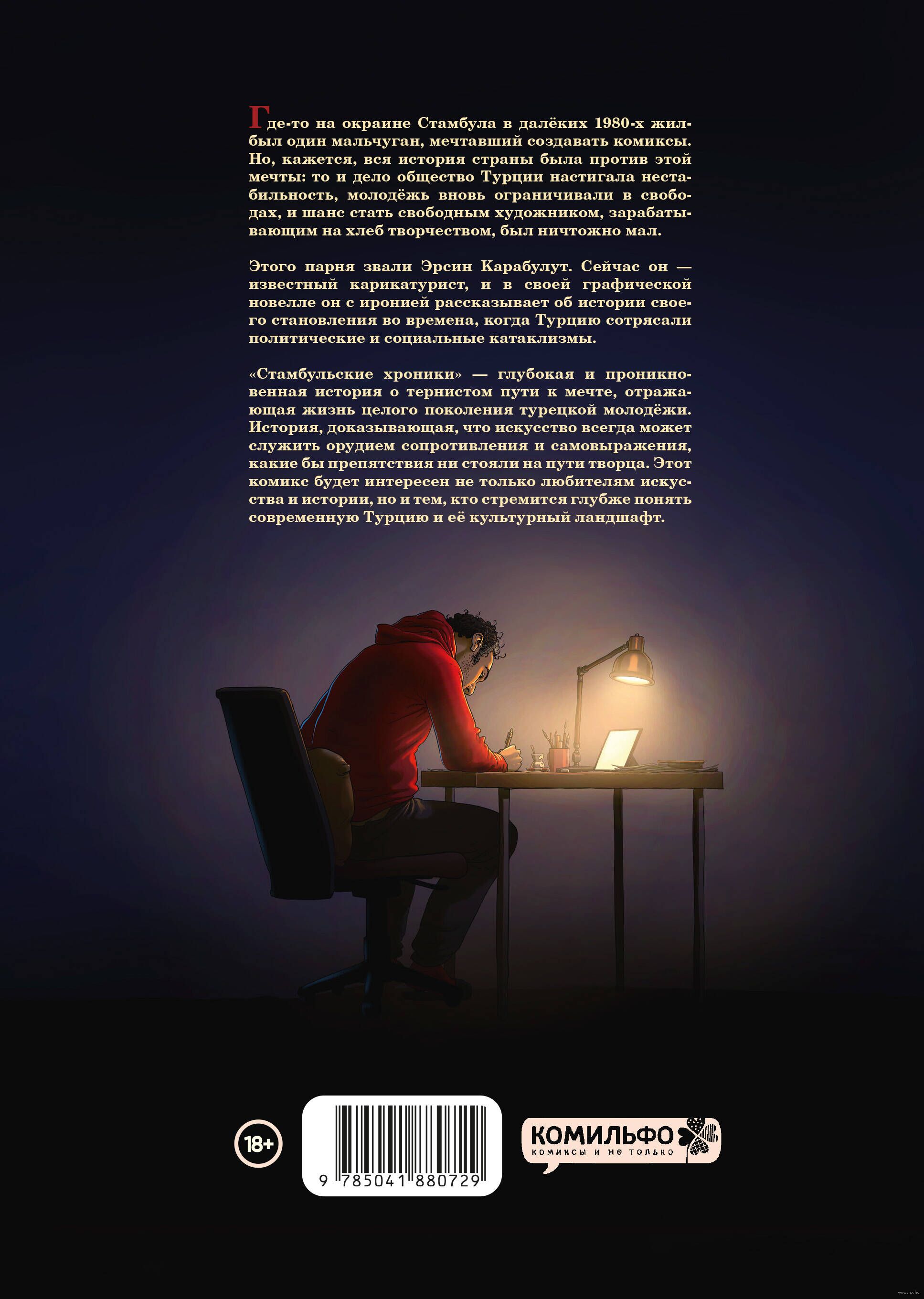 "Стамбульские хроники" – глубокая и проникновенная история о тернистом пути к мечте, отражающая жизнь целого поколения турецкой молодёжи. История, доказывающая, что искусство всегда может служить орудием сопротивления и самовыражения, какие бы препятствия ни стояли на пути творца. Этот комикс будет интересен не только любителям искусства и истории, но и тем, кто стремится глубже понять современную Турцию и её культурный ландшафт.