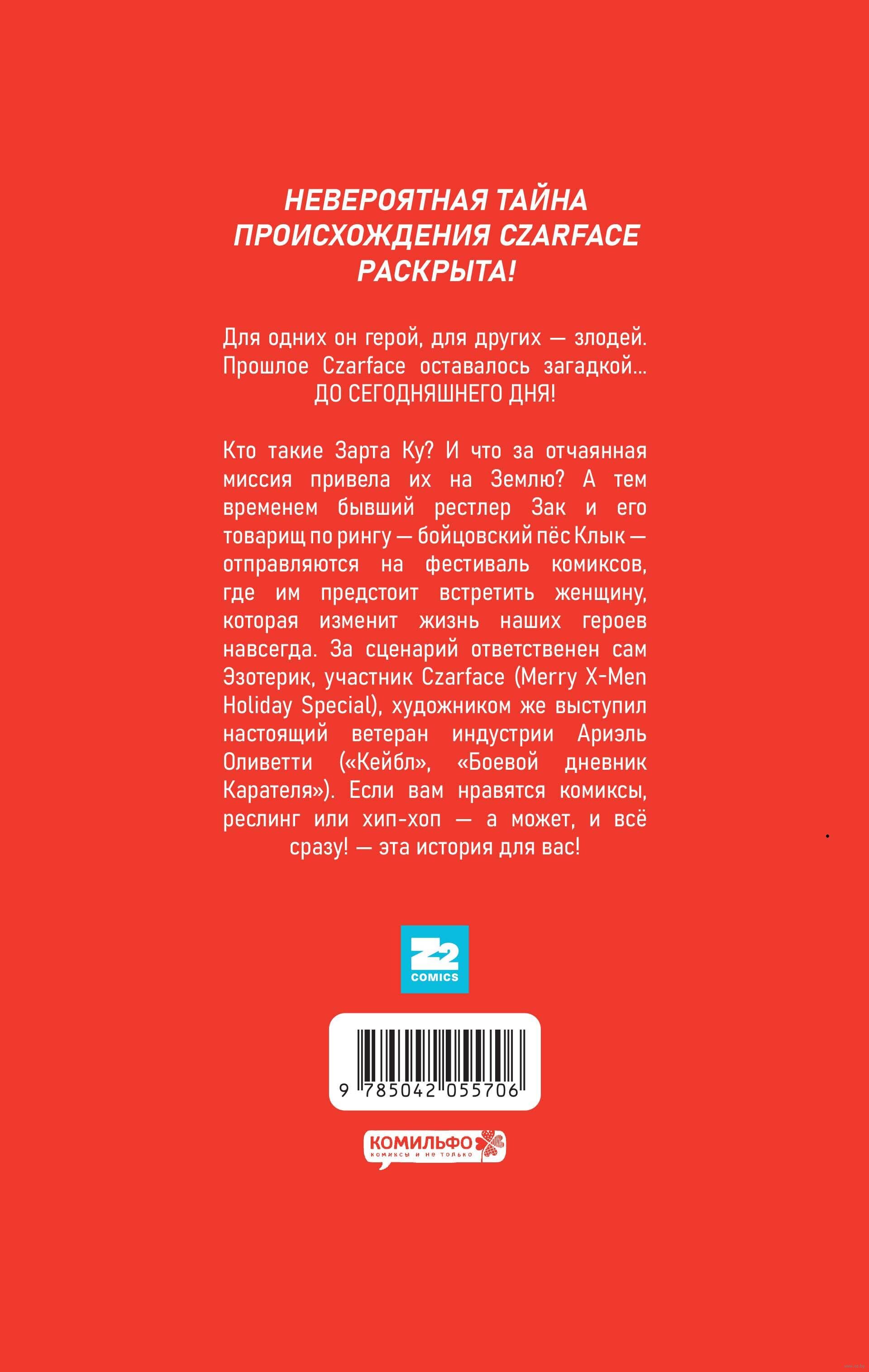 И нет, речь не о супергруппе с одноимённым названием, а об их маскоте, антигерое в навороченном костюме. Группа Czarface считается пропавшей без вести, и почти никто не верит в их возвращение. Завесу тайны над её исчезновением и появлением металлического символа раскроет бывший рестлер Зак на пару с псом Клыком. Один фестиваль комиксов перевернёт его жизнь с ног на голову и на кону будет стоять судьба всей планеты!