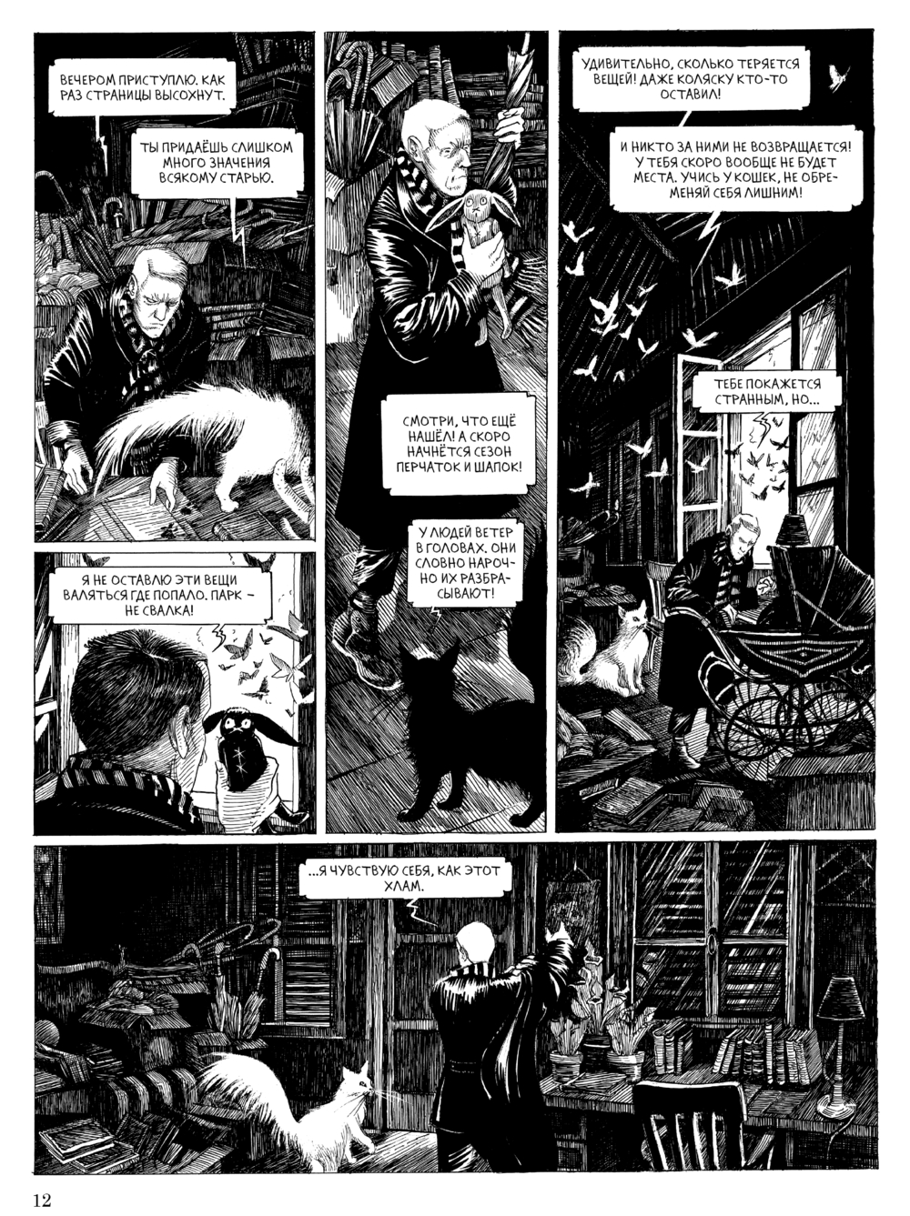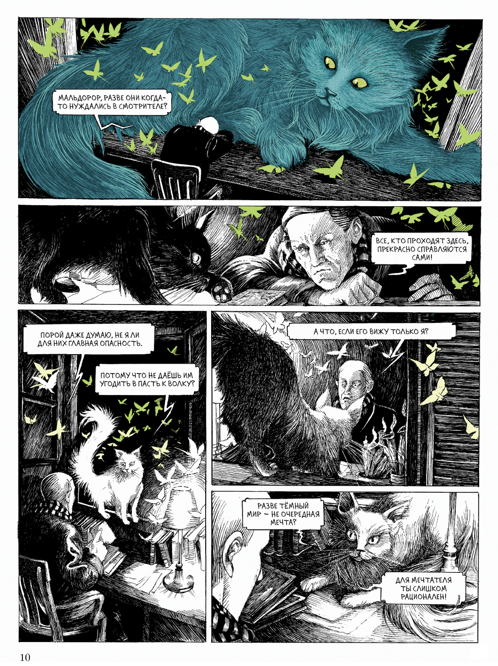 Сочетая юмор абсурда и виртуозную графику, Дарья Шмитт погружает читателя в мир Лавкрафта, чтобы в фантастической и поэтичной манере почтить память мэтра ужасов. Заворожённый кошмарными видениями, смотритель парка приглашает нас вглядеться в сумерки, чтобы различить там ужасы и чудеса, недоступные глазу простого смертного.
