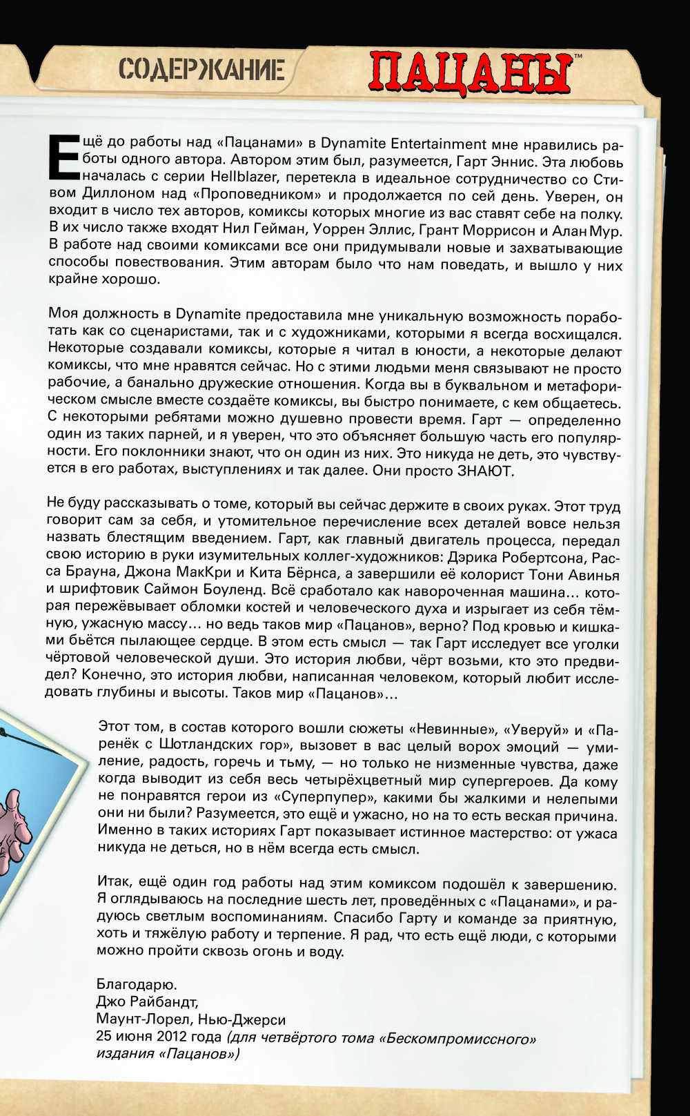 Впервые выпуски № 39-47 гротескного супергеройского комикса Гарта Энниса и Дэрика Робертсона, мини-серия "Паренёк с Шотландских гор" и дополнительные материалы под одной твёрдой обложкой.