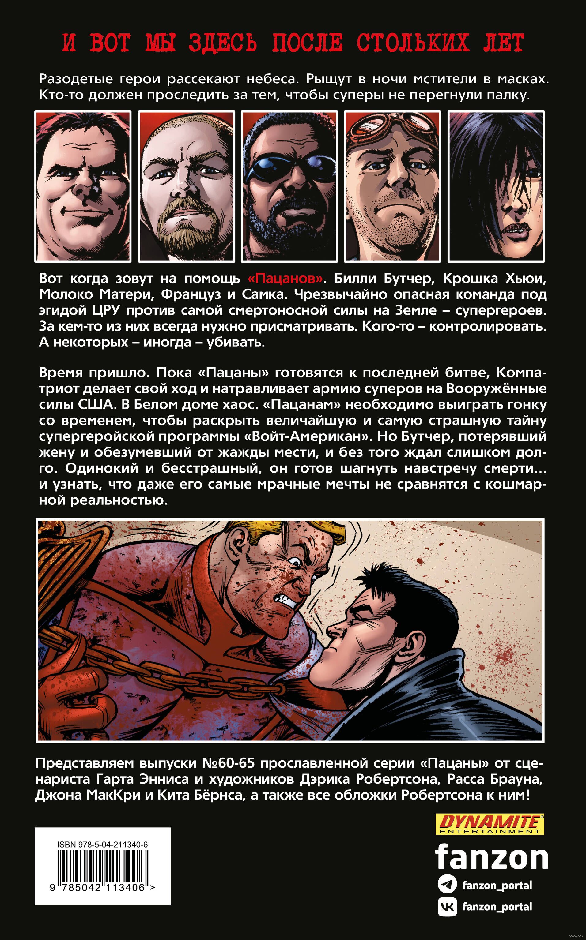 Время пришло. Пока "Пацаны" готовятся к последней битве, Компатриот делает свой ход и натравливает армию суперов на Вооружённые силы США. В Белом доме хаос. "Пацанам" необходимо выиграть гонку со временем, чтобы раскрыть величайшую и самую страшную тайну супергеройской программы "Войт-Американ". Но Бутчер, потерявший жену и обезумевший от жажды мести, и без того ждал слишком долго. Одинокий и бесстрашный, он готов шагнуть навстречу смерти... и узнать, что даже его самые мрачные мечты не сравнятся с кошмарной реальностью.