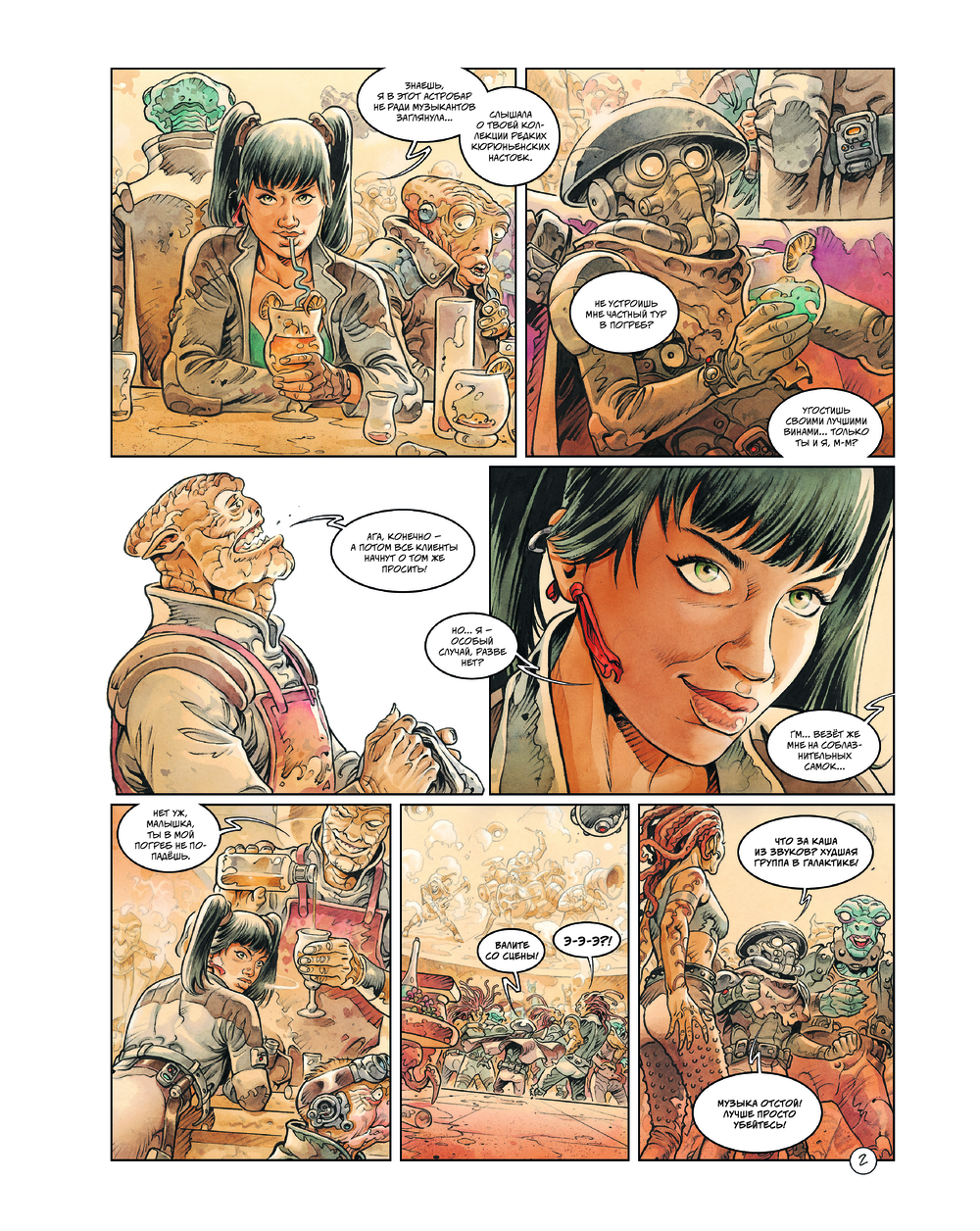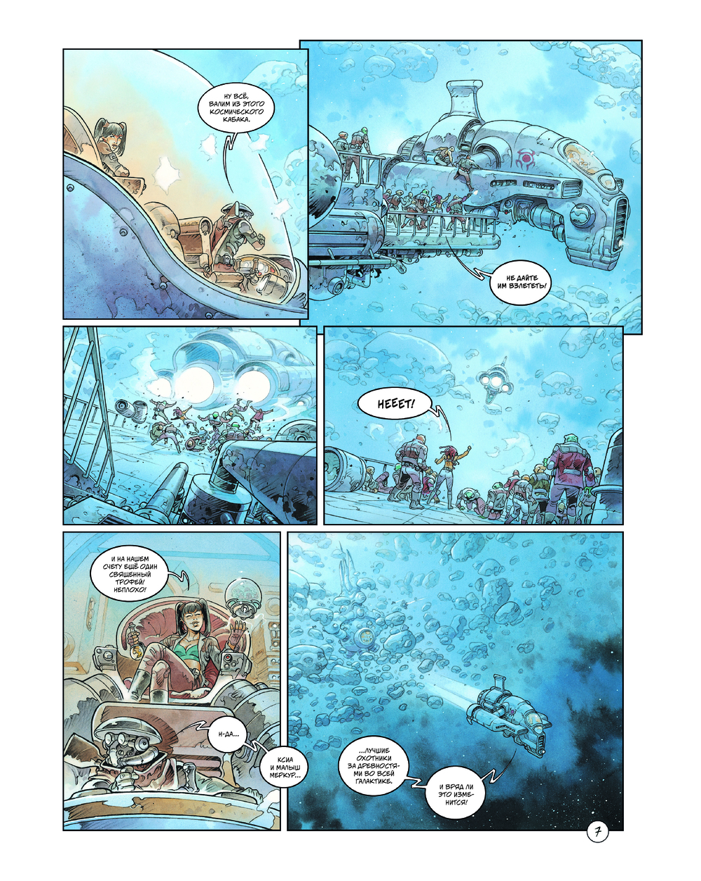 Отправляйтесь в захватывающее космическое приключение с комиксом, где дух "Звездных войн" встречается с дерзким авантюризмом "Индианы Джонса"! Яркие, детализированные иллюстрации Груна, напоминающие психоделическую эстетику Мебиуса и эпичность "Стражей Галактики", оживляют экзотические миры и харизматичных героев, а динамичный сюжет Сильвена Рунберга, полный юмора и интриг, затягивает похлеще "Ковбоя Бибопа".