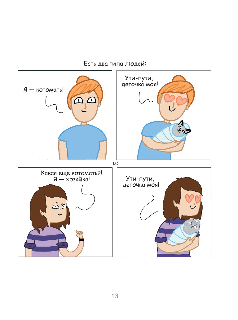Если по утрам вы просыпаетесь с котом на голове, ваш самый нарядный костюм и макияж из кошачьей шерсти, а без кота и жизнь не та – эта книга точно для вас! Добро пожаловать в котовселенную известного иллюстратора-комиксиста Лены Соломоновой! В забавных комиксах с сюжетами из жизни воинственной Белки, мудрого Арчибальда Котаныча, ревностного Артурчика и кайфуши Дольки вы непременно узнаете себя и своего заМУРчательного питомца. Есть у вас котэ или его еще пока нет – совершенно неважно, благодаря этой книге вы точно прочувствуете, каково это, когда в доме есть кошки и кто в доме настоящий хозяин.