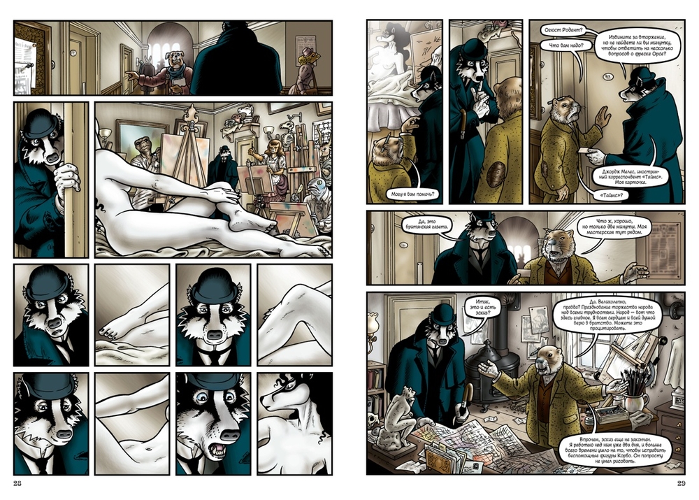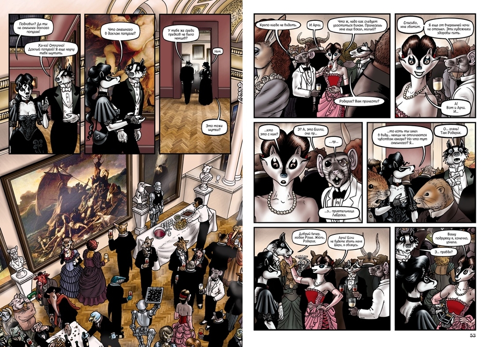 Именно этим маршрутом отправляется детектив-инспектор ЛеБрок из Скотленд-Ярда, расследуя "невозможное" убийство в запертой комнате знаменитого художника Гюстава Корбо, или пытаясь вернуть в семью племянницу своей квартирной хозяйки, угодившую в сети тоталитарной секты "Серебряный путь", или разыскивая так называемые Истинные Евангелия – с поистине барсучьим упорством. Ведь ЛеБрок не кто иной как барсук, и мир "Гранвиля" населен преимущественно антропоморфными животными, тогда как люди ("тестолицые") служат на самых черных работах и лишены гражданских прав…
