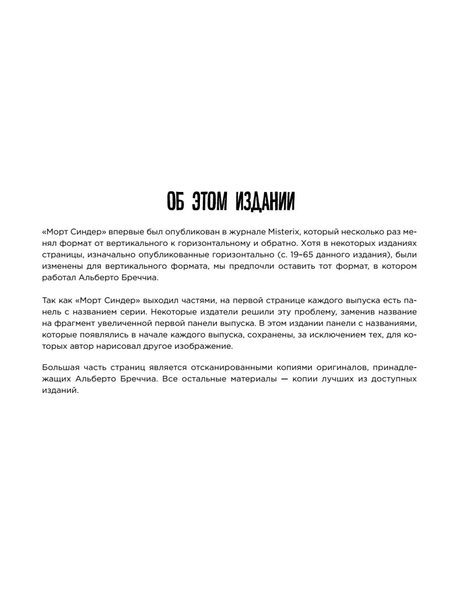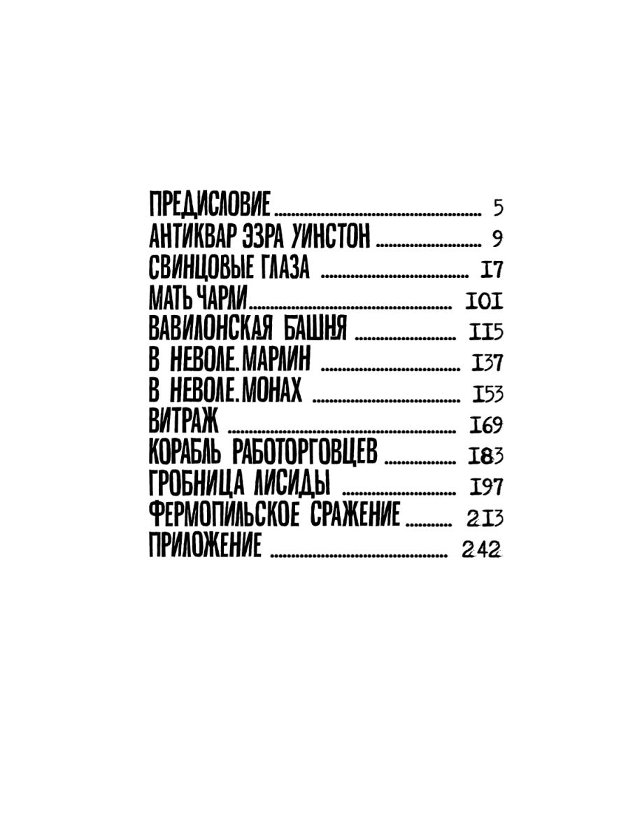 Главный герой графического романа – загадочный Морт Синдер, бессмертный путешественник во времени. Вместе с ним читатели отправляются в прошлое, чтобы с первого ряда наблюдать за строительством Вавилонской башни, погрузиться в жизнь американской тюрьмы времен Великой депрессии, побывать в окопах Первой мировой войны и на корабле работорговцев и даже поучаствовать в легендарном Фермопильском сражении.