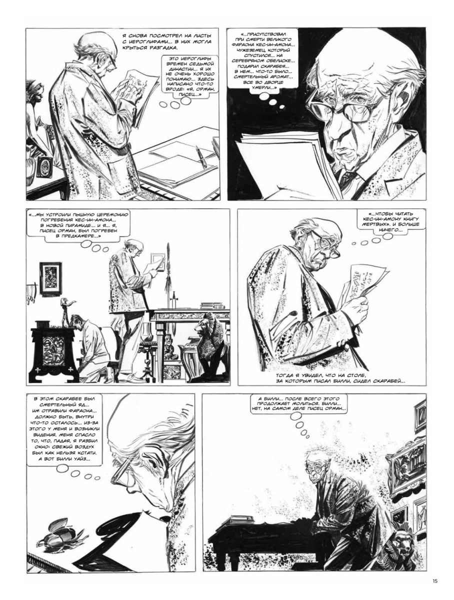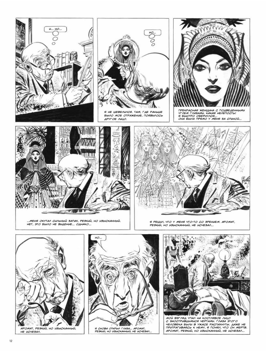 Мастерски работая со светотенью, Альберто Бреччиа создает атмосферные выразительные изображения, которые легко переносят читателя на мрачные кладбища, в древнеегипетские гробницы и на опасные воды Атлантики.