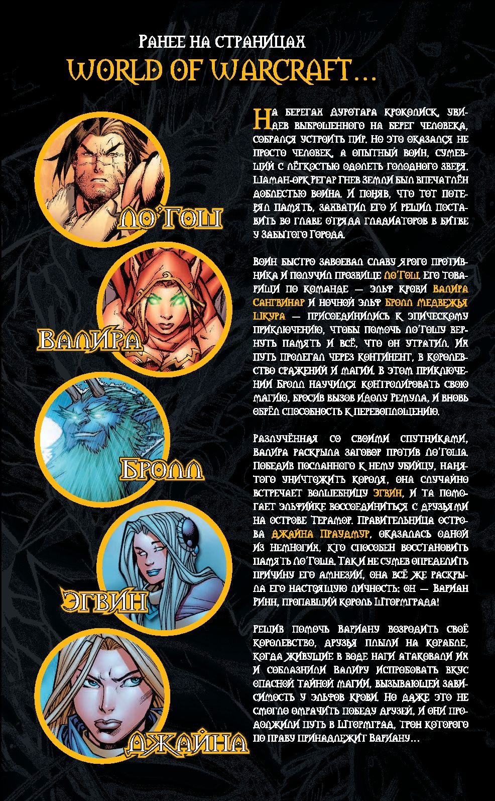 Когда два человека делят один трон, есть ли у королевства шанс на спасение? Воин Ло'Гош как две капли воды похож на Вариана Ринна и хранит его воспоминания. Он смел и принимает решения как истинный король – ясно, что только он один должен занять трон. С помощью старых друзей Бролла и Валиры, а также нового союзника Таргаса Старой Наковальни Ло'Гош намерен сорвать маску с самозванца, который занял его место в Штормграде. Но действительно ли Вариан ему враг?