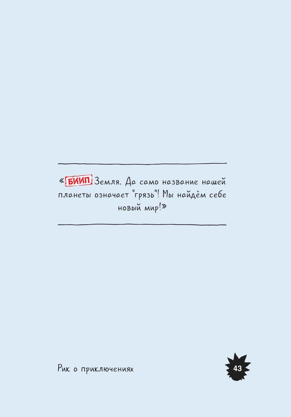 Книга это цитатник. Здесь собраны цитаты рика из сериала. Если вам просто интересно прочитать их и посмотреть на картинки, можете купить это книгу, а так к покупке не желательно только трата денег, но как подарок самый раз. Именно плюс этой книга для меня, что я сам захотел записать, как и о чем я думаю и это не плохой оброзец, как это написать.