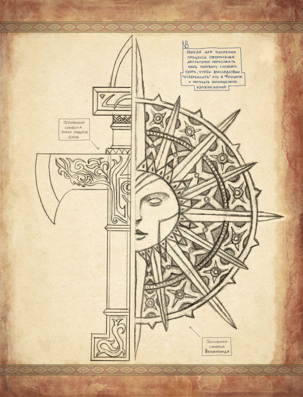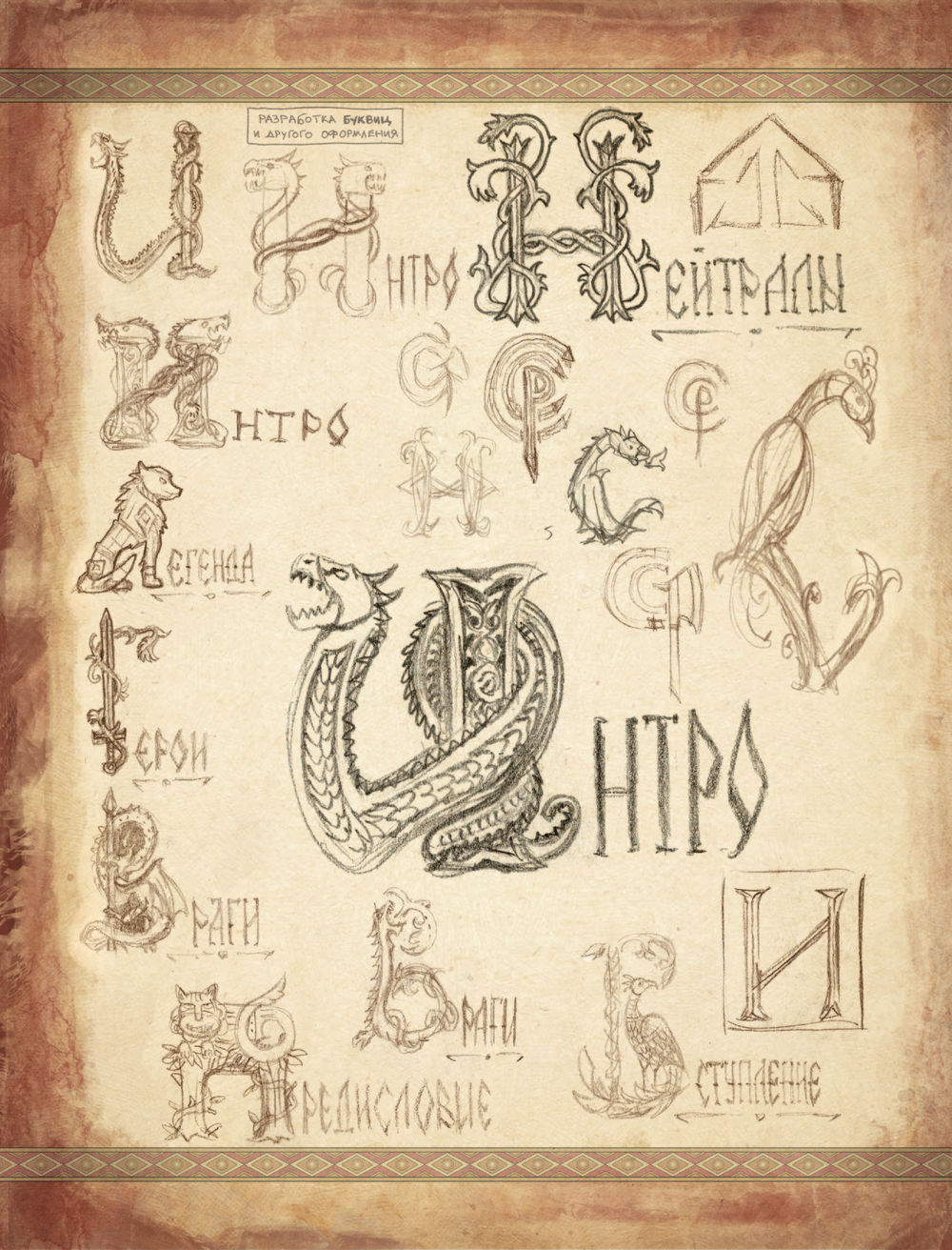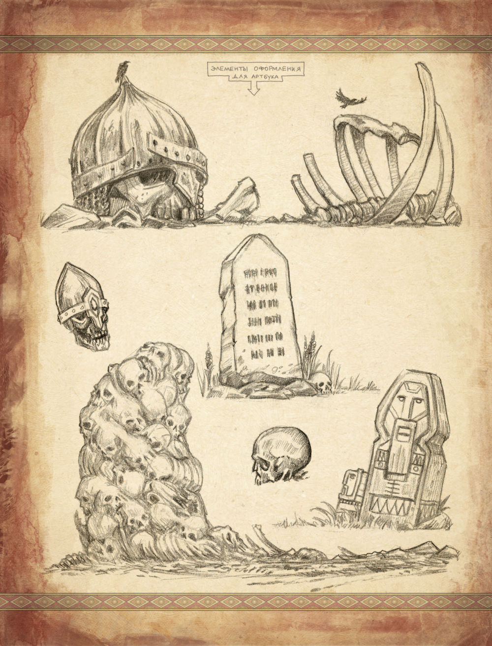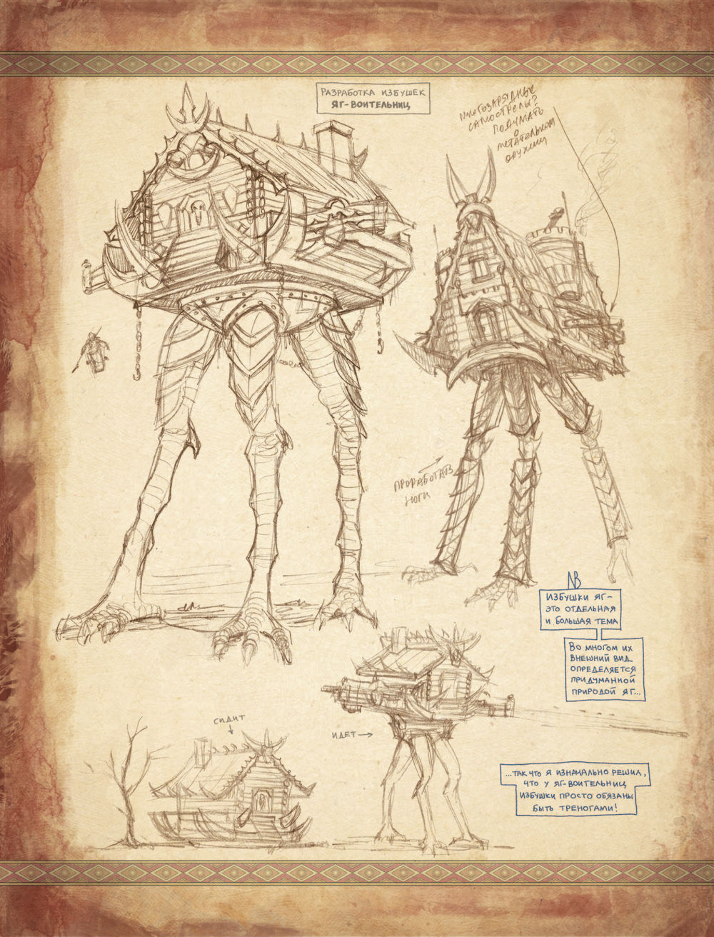Поэтому решили издать их отдельным сборником. В него вошли эскизы известных работ Романа Папсуева и много нового: от грубых "почеркушек" и "записок на полях" до детально отрисованных иллюстраций, которые попали в финальные макеты артбуков.