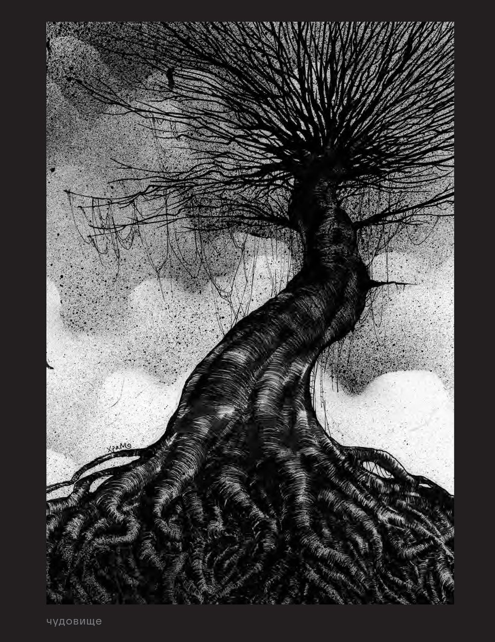 В ваших руках – целая коллекция леденящих душу шедевров, включающая в себя более 150-ти иллюстраций, а также эксклюзивные комментарии автора. Этот артбук содержит его лучшие работы, начиная с 2012 года: от гипнотизирующих абстракций и мрачных чернильных лесов до изящных изображений обнаженных дам, и чудищ японского фольклора. Автор создает уникальную графику при помощи всего лишь двух материалов – бумаги и черной туши.