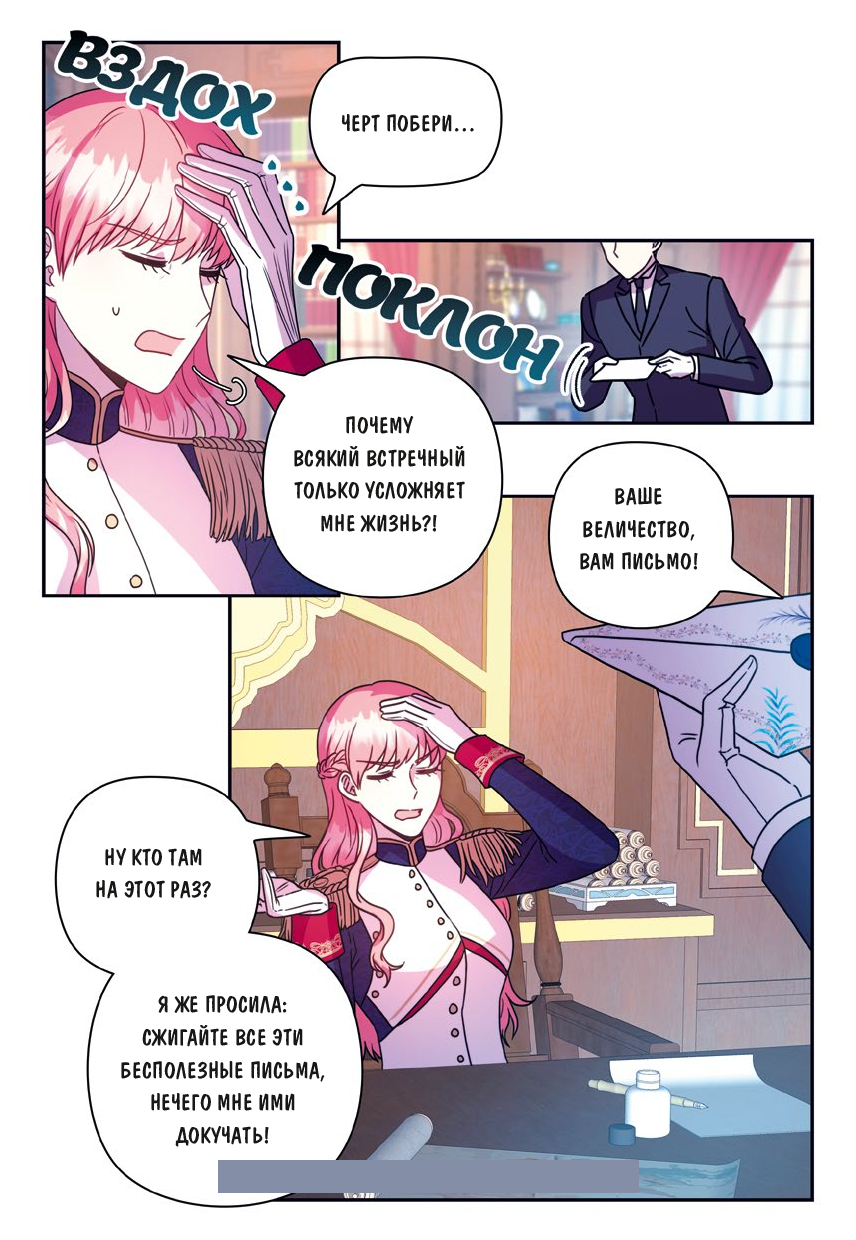 Теперь она очаровательная аристократка, дочь барона, госпожа Литера Мерто. Пользуясь знаниями о мире, в котором оказалась, Литера начинает новую жизнь. Вскоре она выходит замуж за наследного принца и становится императрицей. Вот только супруг настолько ревнив, что однажды в безумном порыве... убивает несчастную жену! В агонии Литера взывает к богу и просит – в качестве извинения за допущенную ошибку – дать ей еще один шанс. Бог милостиво возвращает ее в самое начало книги.