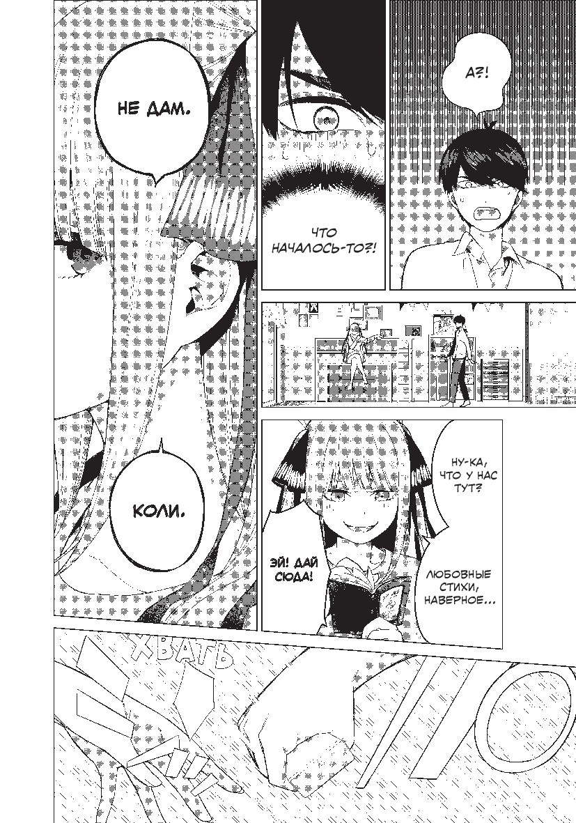 Накануне своей свадьбы Футаро Уэсуги вспоминает знакомство с любимой. В те времена он учился в старшей школе и отчаянно нуждался в деньгах. Когда ему предложили побыть репетитором у некой девушки из богатой семьи, он с радостью схватился за возможность подзаработать. Но вот сюрприз – его ученицами оказались не одна, не две, а целях пять девушек: пять близняшек, да таких хорошеньких, что глаз не оторвать...