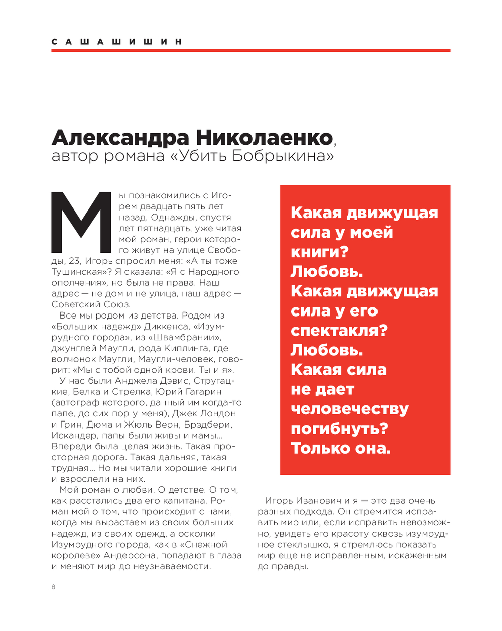Уникальный иллюстрированный артбук, посвященные закулисной истории спектакля "САШАШИШИН". Для всех, неравнодушных к магии театра.