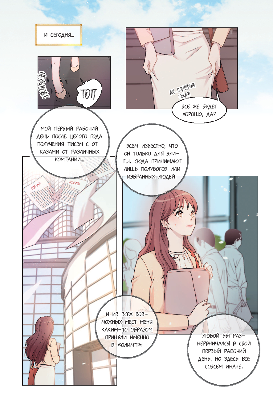 300 лет назад боги и богини явились человечеству и мифы стали реальностью. Вскоре боги основали компанию "Олимп", откуда управляли миром. Молодая девушка Ирида устраивается на работу помощницей в штаб-квартиру самих олимпийцев. Однако смертным здесь непросто, особенно Ириде, которая в прошлые выходные познакомилась в баре сразу с двумя полубогами компании – надменным Данте и нежным Орионом. Никто не сравнится с красотой олимпийцев, но девушка быстро понимает, что все они упрямые и капризные. Сможет ли она противостоять богу любви Эросу, вспыльчивости Афродиты и не попасть в любовный треугольник с очаровательными сыновьями Афины и Аида?