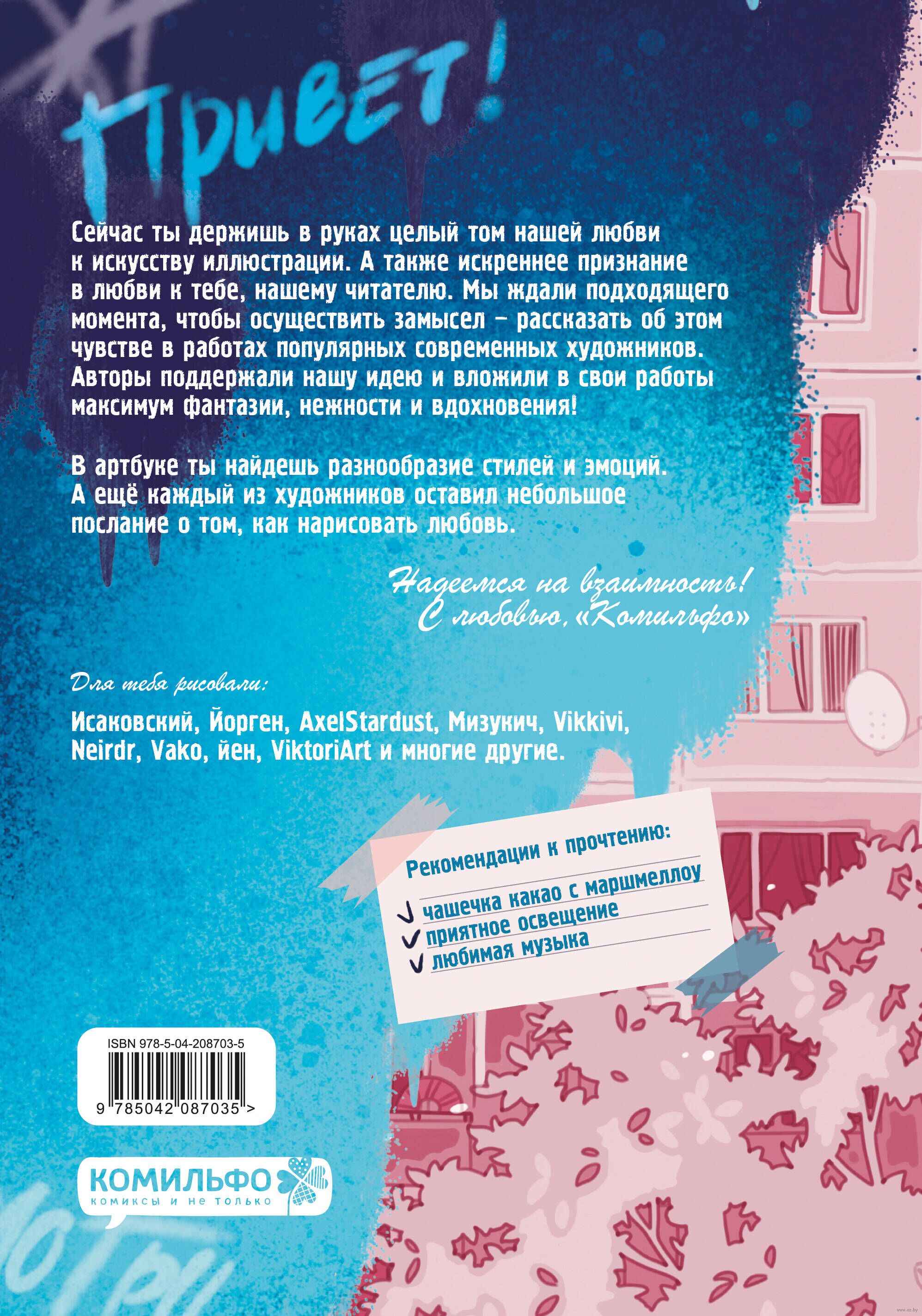 Сейчас ты держишь в руках целый том нашей любви к искусству иллюстрации. А также искреннее признание в любви к тебе, нашему читателю. Мы ждали подходящего момента, чтобы осуществить замысел – рассказать об этом чувстве в работах популярных современных художников. Авторы поддержали нашу идею и вложили в свои работы максимум фантазии, нежности и вдохновения! В артбуке ты найдешь разнообразие стилей и эмоций. А ещё каждый из художников оставил небольшое послание о том, как нарисовать любовь.