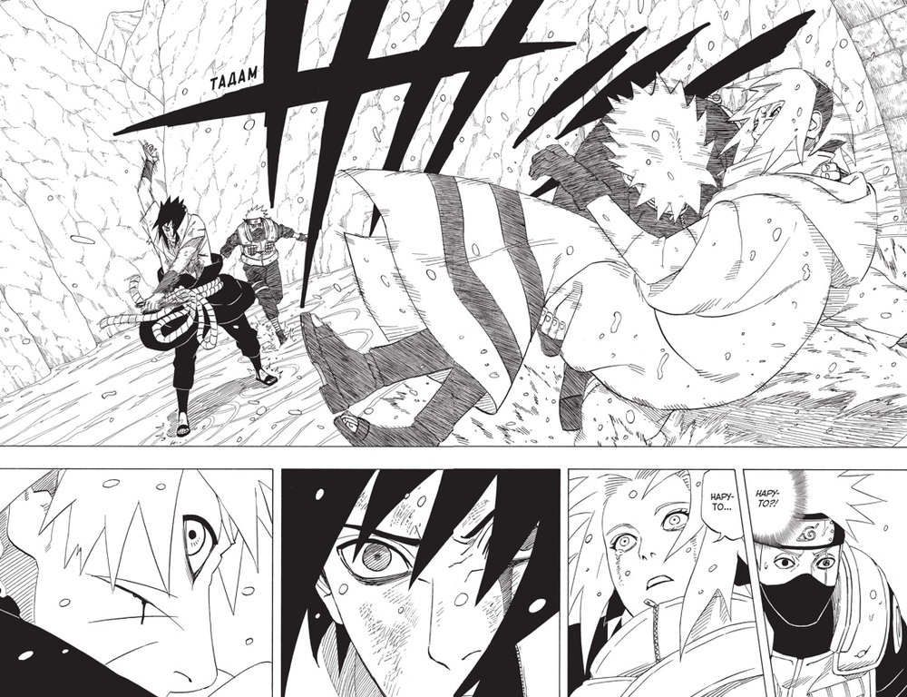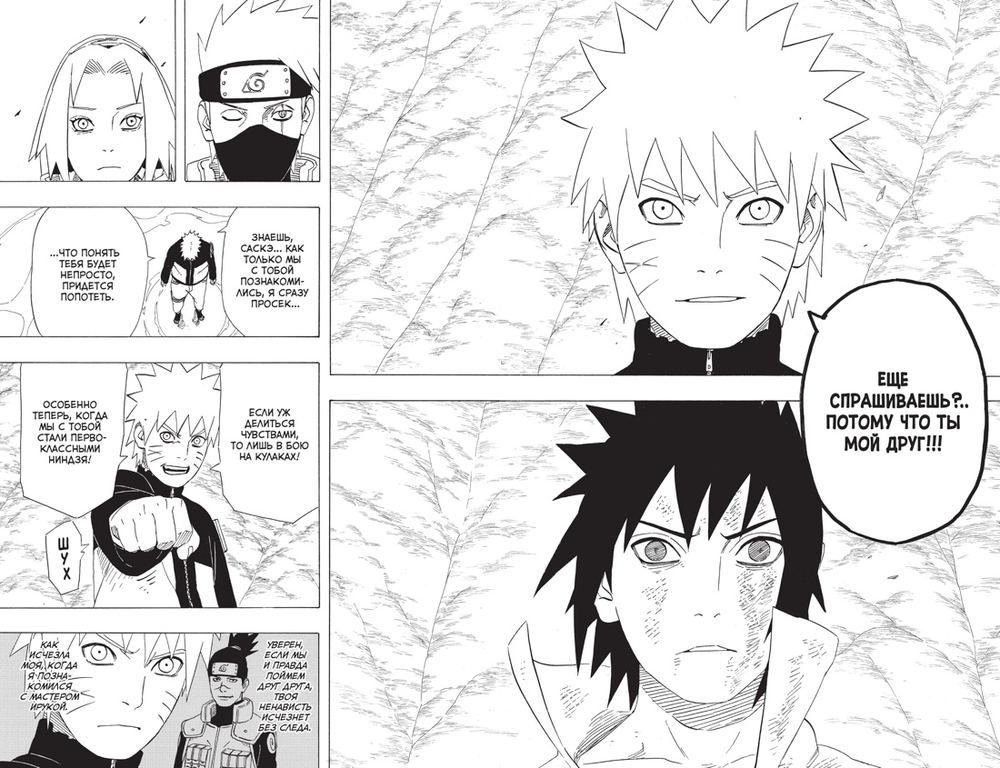 Саскэ, Сакура и Наруто наконец встретились лицом лицу. Когда-то лучшие друзья, талантливые синоби из команды номер семь, – молодые люди уже давно не могут найти общий язык. Саскэ пошел по темному пути и хочет уничтожить всех жителей Листвы, включая бывших товарищей. И все же Наруто не намерен отказываться от друга, пусть даже исходом схватки один на один может стать смерть обоих. Молодой ниндзя решает в очередной раз поговорить с Саскэ, но Мадара прерывает их беседу. Саскэ возвращается в логово "Рассвета", а Наруто отправляется на остров, где когда-то тренировался Киллер Би, чтобы познать своих внутренних демонов...