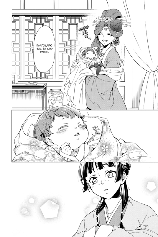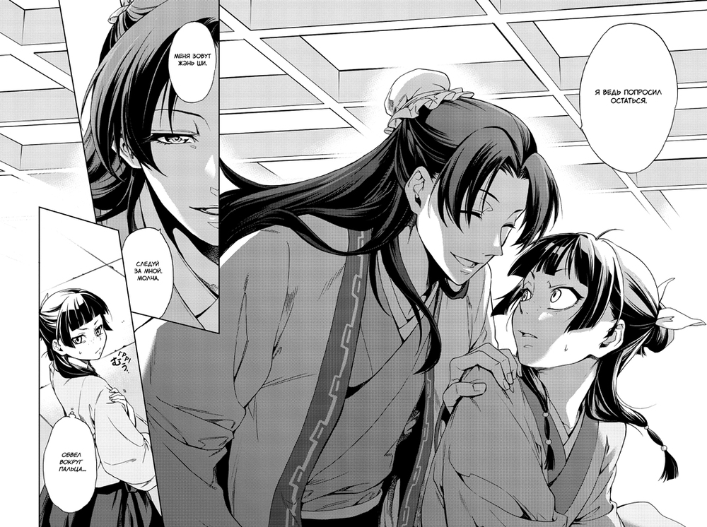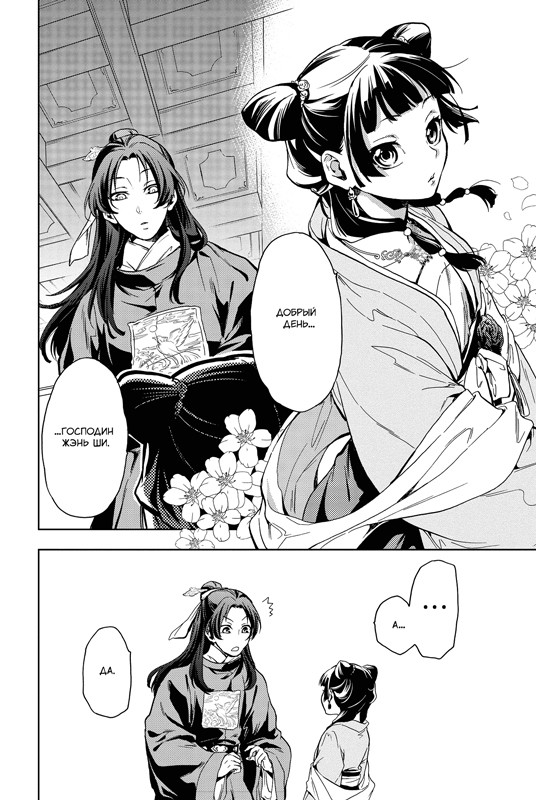Став дворовой прислугой, она мучительно выжидает, когда ее отпустят со службы. Однако, к своему несчастью, она замечает, что новорожденные дети наложниц погибают далеко не случайно. Неужели чей-то заговор? Или государственная измена? И Маомао против воли оказывается втянута в хитросплетенную сеть дворцовых интриг.