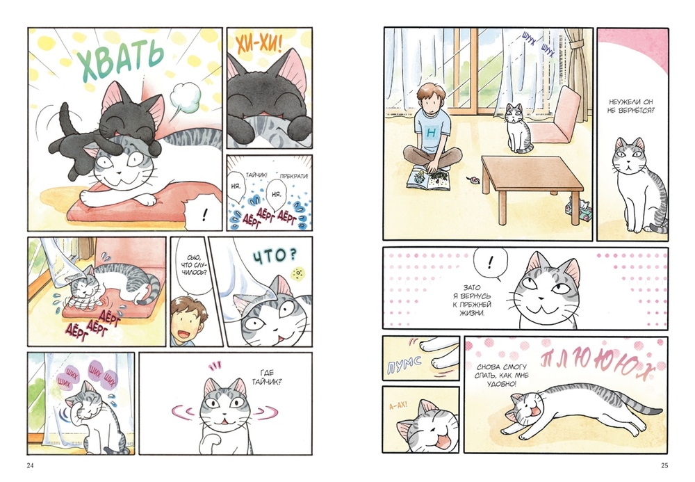 С появлением неугомонного котёнка Тайчика жизнь доброй кошечки Сью наполнилась тревогами и заботами. То малыш на лестницу заберётся и прыгнет с неё – да так, что чуть шею не свернёт, то спрячется неизвестно куда – и ищи его свищи. В общем, не даёт Сью скучать. Но только котики притерлись друг к другу и наладили быт, как за Тайчиком пришёл… его настоящий хозяин!..