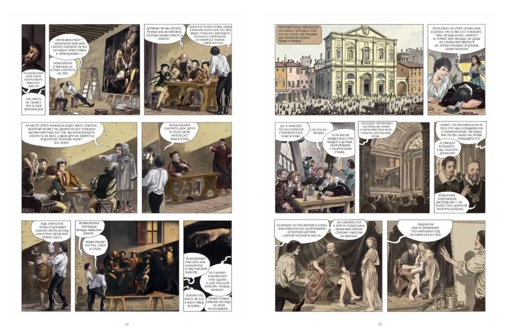 Микеланджело Меризи, известный как Караваджо (1571–1610), вошел в историю как один из величайших художников – тонко чувствующий, стремительный, склонный к риску и гедонизму. Кончик его кисти вырезал свет и тени, создавая незабываемые работы и необыкновенный реализм. Четыре столетия спустя другой итальянский мастер рисования, Мило Манара, отдает дань уважения гению своим графическим романом.
