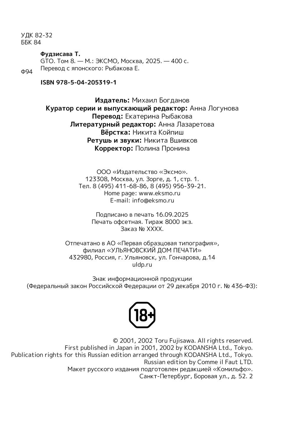 | Название в оригинале | Great Teacher Onizuka. Vol. 8 |
