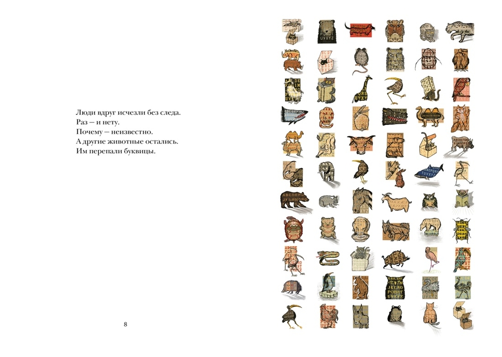 Перед вами изумительный плод сотрудничества одного из самых умных и глубоких писателей современности с одним из самых самобытных художников. Артбук "Звери в буквах" – "Алиса в Стране чудес" пополам с Платоном, "Обитатели холмов", начитавшиеся Лафонтена, лаконичная сказка, глубокая притча и выставка, куда заглядываешь случайно и мимоходом, а потом полдня не находишь в себе сил уйти и советуешь ее всем друзьям и знакомым. Нам вслед устремлены глаза, которые пристально наблюдают каждый день. После нашего исчезновения звучат голоса, которые мы привыкли не замечать.