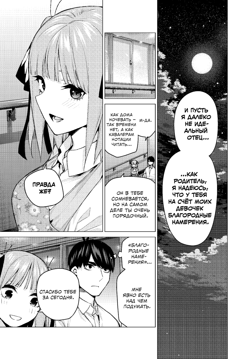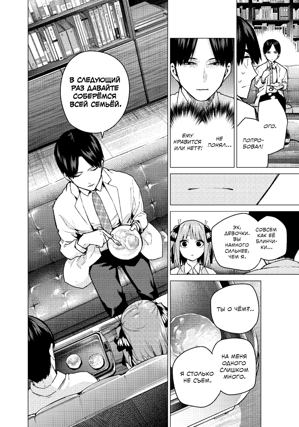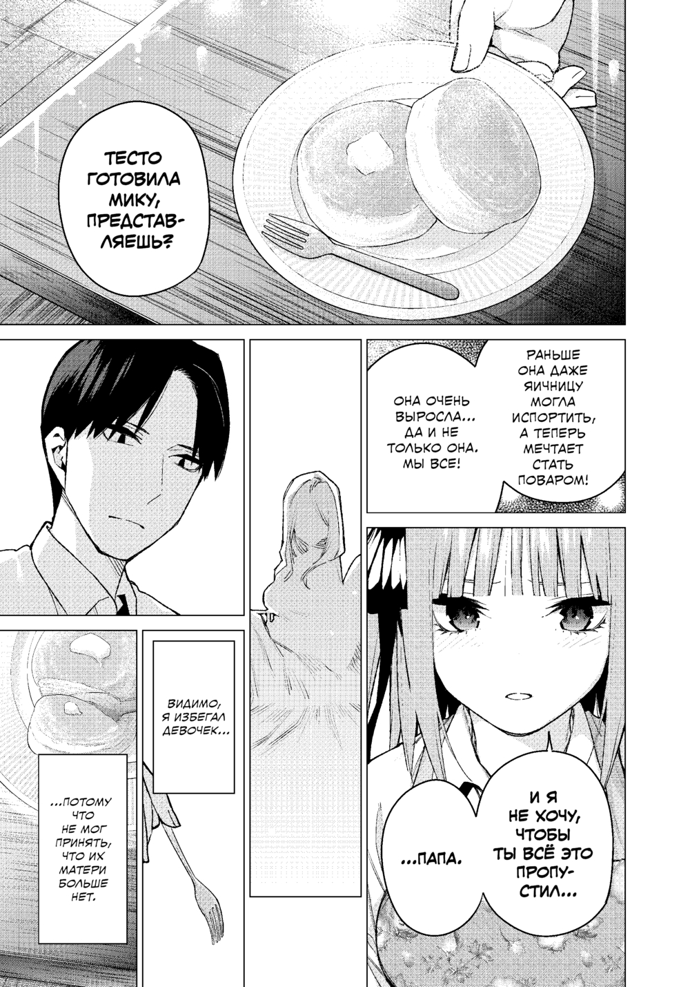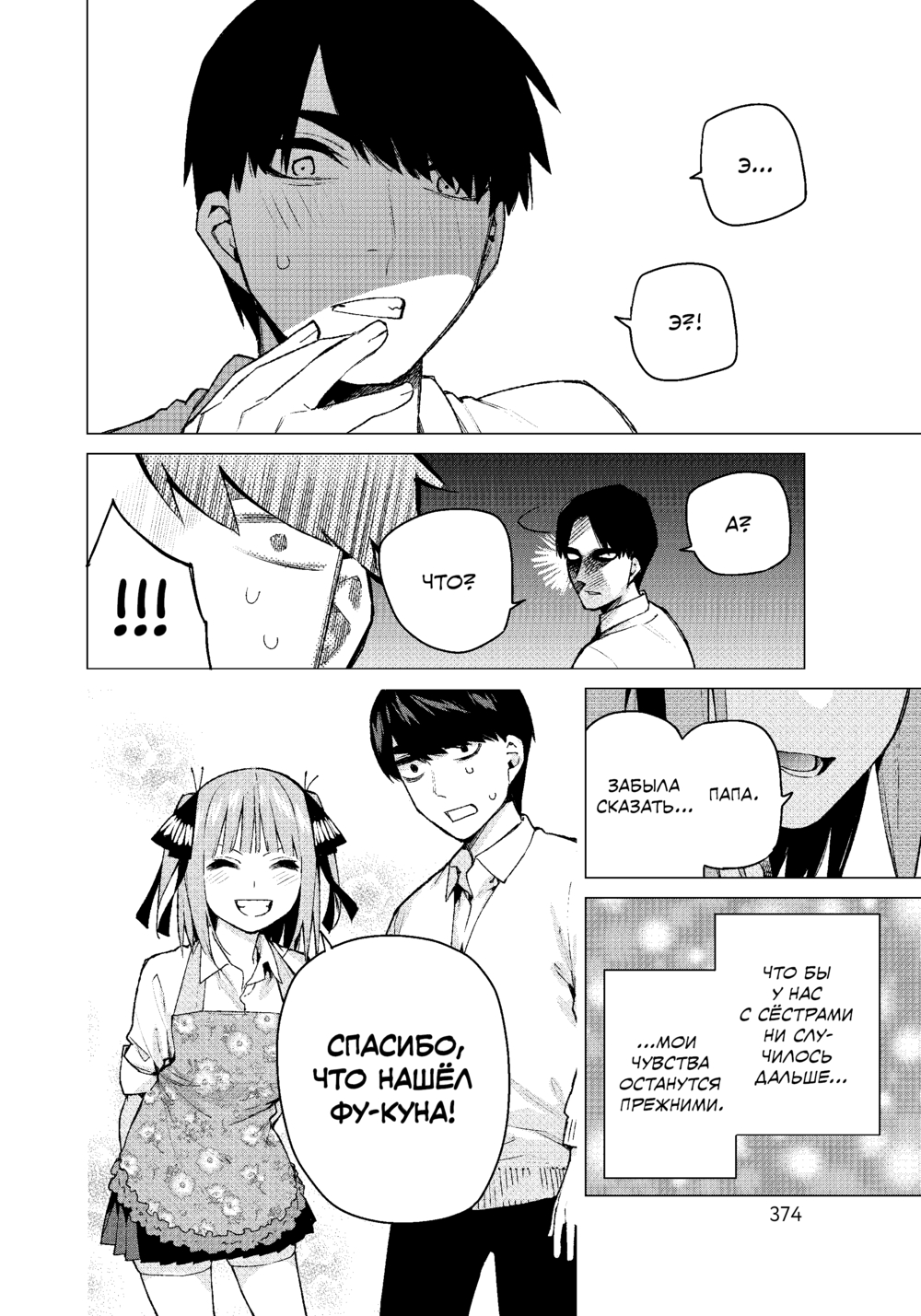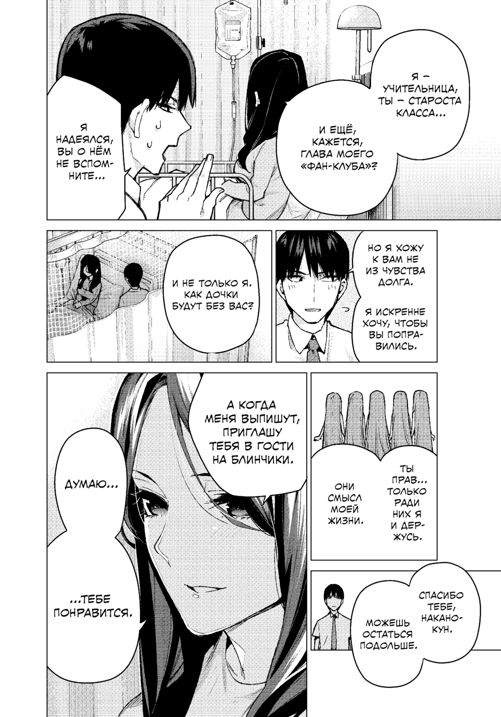 Выясняется, что девочка из воспоминаний Футаро – это Ёцуба. Именно она познакомилась с ним шесть лет назад, и эта встреча перевернула жизнь обоих. Ёцуба помнит его, но решает скрыть и этот факт, и свои чувства к Футаро: иначе, как она считает, она поступит нечестно по отношению к сёстрам, которые всегда помогали ей...