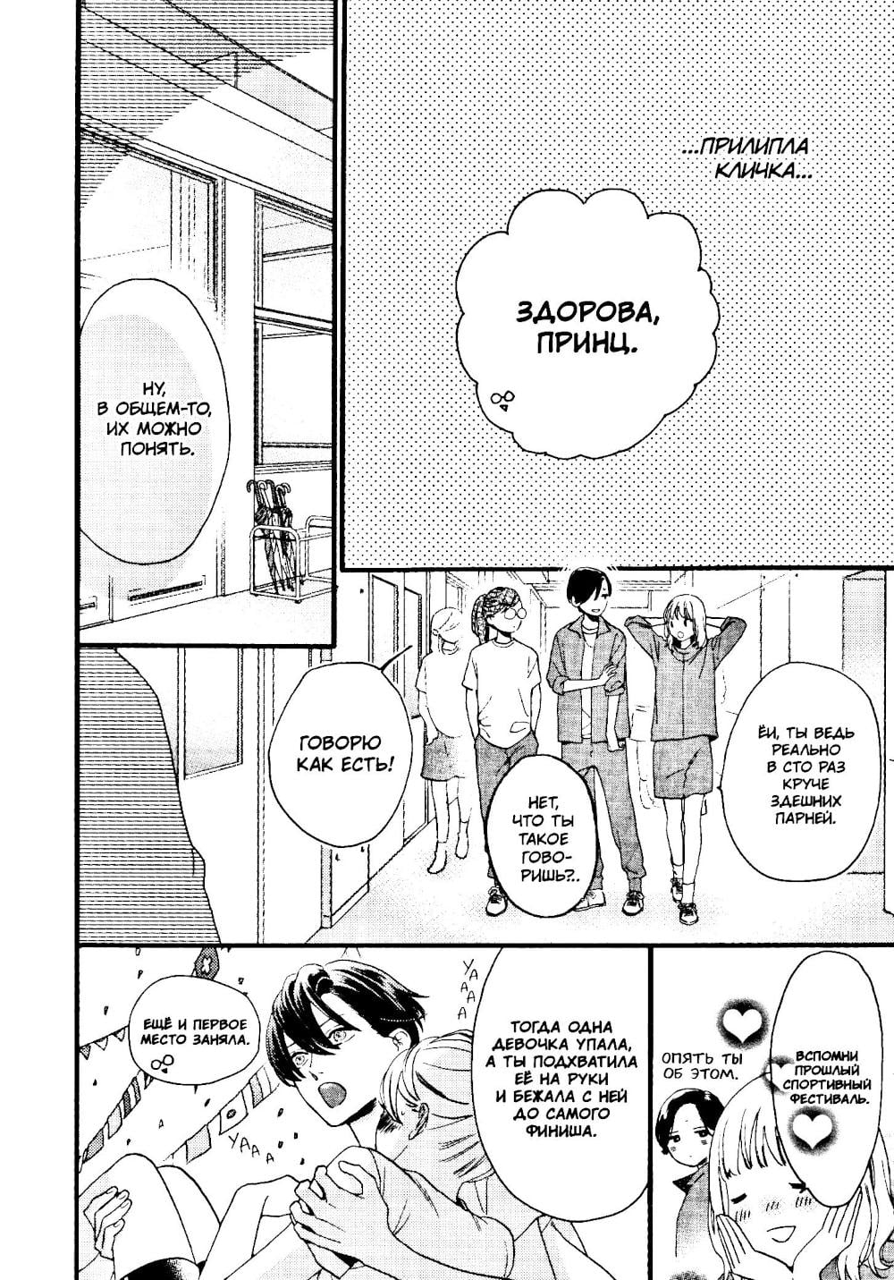 Я лучше, чем кто-либо, понимаю, что совсем не подхожу на роль главной героини. Ёи Такигути прозвали Принцем за её элегантность и красоту. Однако все восхищения и уверения в том, что она похожа на героиню сёдзё-манги не находят в ней отклика. Однажды она сталкивается с Итимурой – сэмпаем, которого тоже зовут Принцем, но повадками на Принца совсем не похожего...