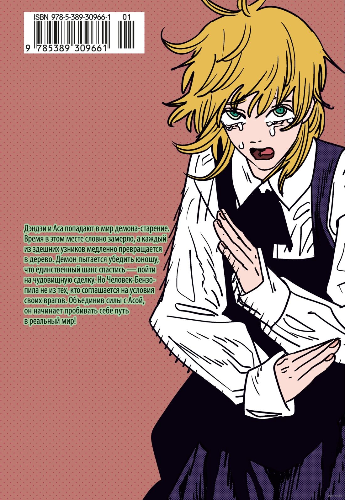 Дэндзи и Аса попадают в мир демона-старение. Время в этом месте словно замерло, а каждый из здешних узников медленно превращается в дерево. Демон пытается убедить юношу, что единственный шанс спастись – пойти на чудовищную сделку. Но Человек-Бензопила не из тех, кто соглашается на условия своих врагов. Объединив силы с Асой, он начинает пробивать себе путь в реальный мир!