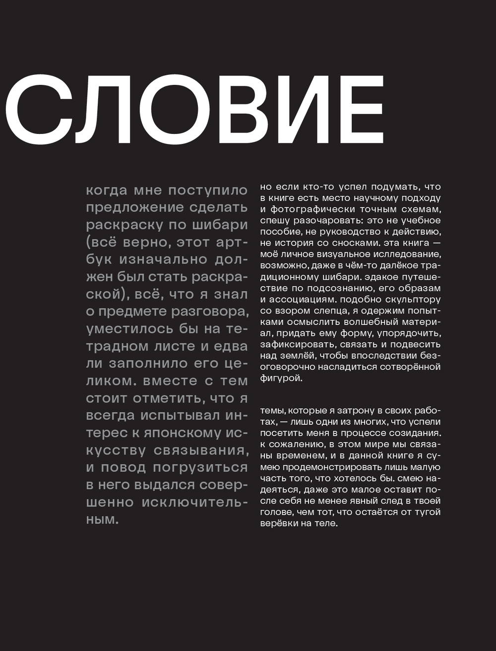 Этот артбук – погружение в японское искусство шибари. На его страницах вы найдете авторские иллюстрации, посвященные мастерству связывания, дополненные комментариями автора, которые помогут раскрыть глубину и многогранность данной дисциплины.