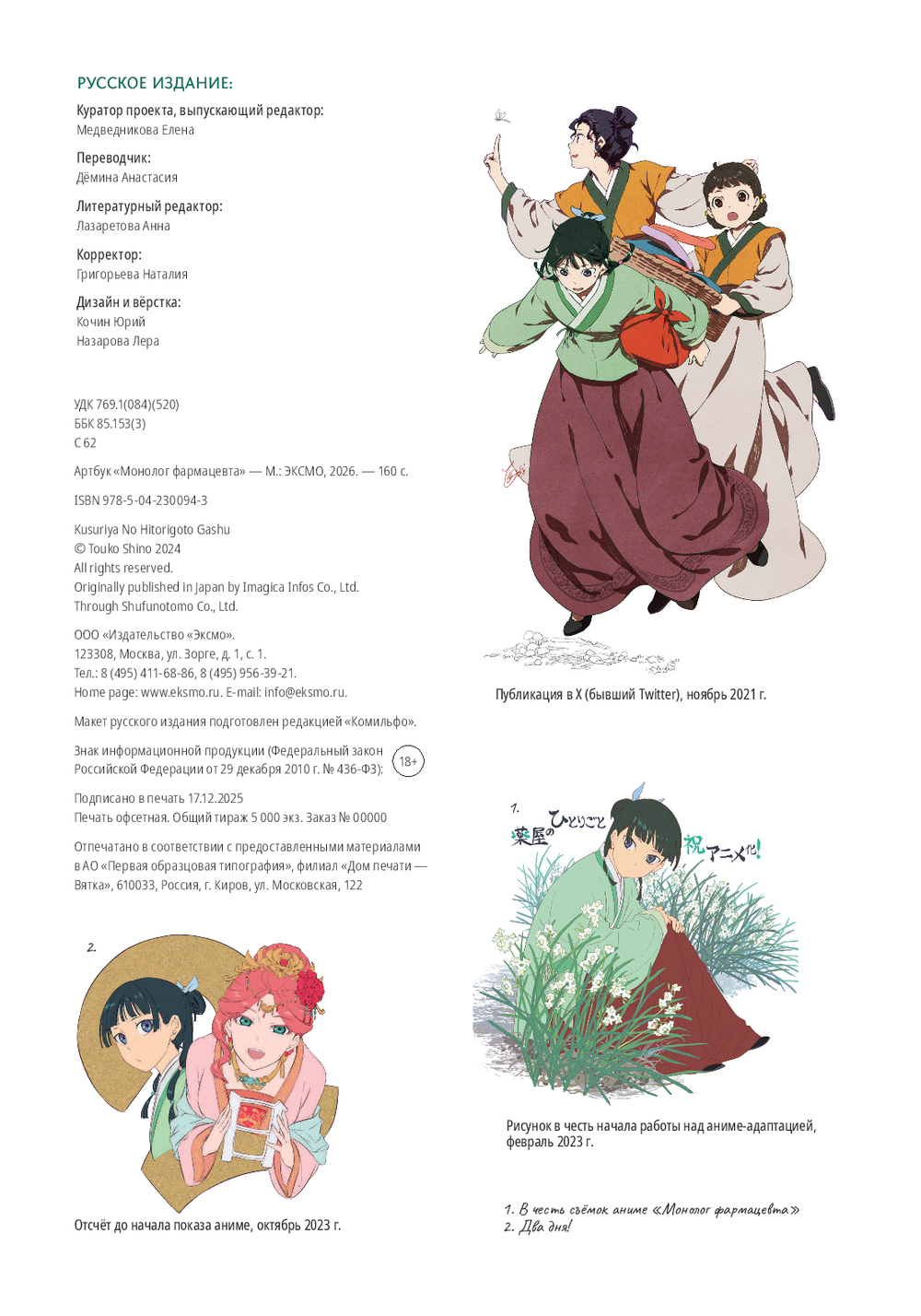 Условия бонусной программы| Название в оригинале | The Apothecary Diaries Art Book |