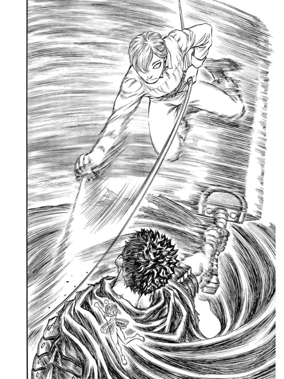 Однако наступает ночь, и за Гатсом в очередной раз приходят создания тьмы, желая напиться его крови. Задумав побег, Гатс забирает с собой Фарнезе, и та наконец воочию видит, что предшествует жутким чудесам и знамениям. И кто именно преследует загадочного Черного Мечника...