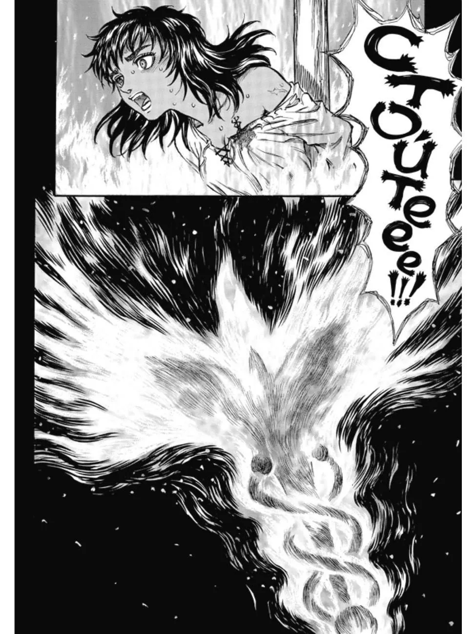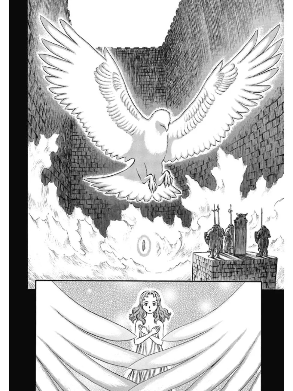 Гатсу удается справиться с королевой эльфов, но его сильно ранят, чем пользуется отряд святых рыцарей ордена Железных цепей и его капитан леди Фарнезе. Захватив Черного Мечника, она мечтает растолковать знамения, о которых твердит Святой Престол: все ожидают явление Темного Сокола.