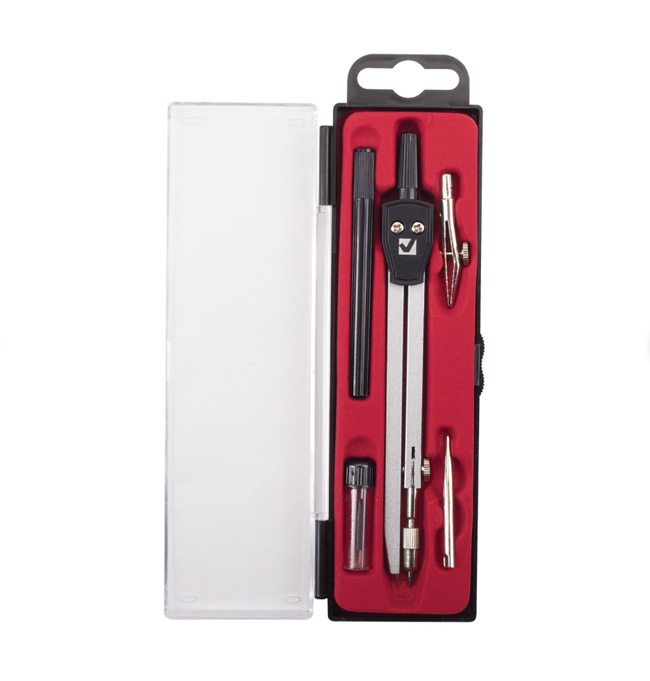 Металлическая готовальня предназначена для выполнения чертежных работ. В состав готовальни входят 5 предметов: