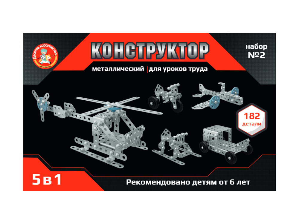Металлический конструктор для уроков труда 5 в 1 "№2" в пластиковом чемоданчике – это универсальный набор для занятий конструированием. Из него можно собрать: автомобиль, байк, самолет, снегоход, вертолет.