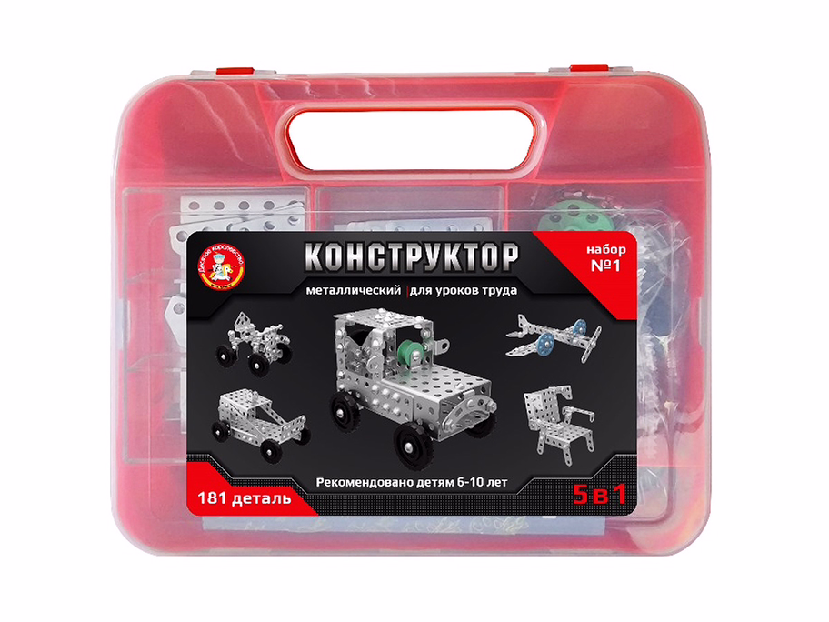 Металлический конструктор для уроков труда 5 в 1 "№2" в пластиковом чемоданчике может также стать основой для творческих проектов на основе деталей конструктора и использоваться для уроков труда в школе.