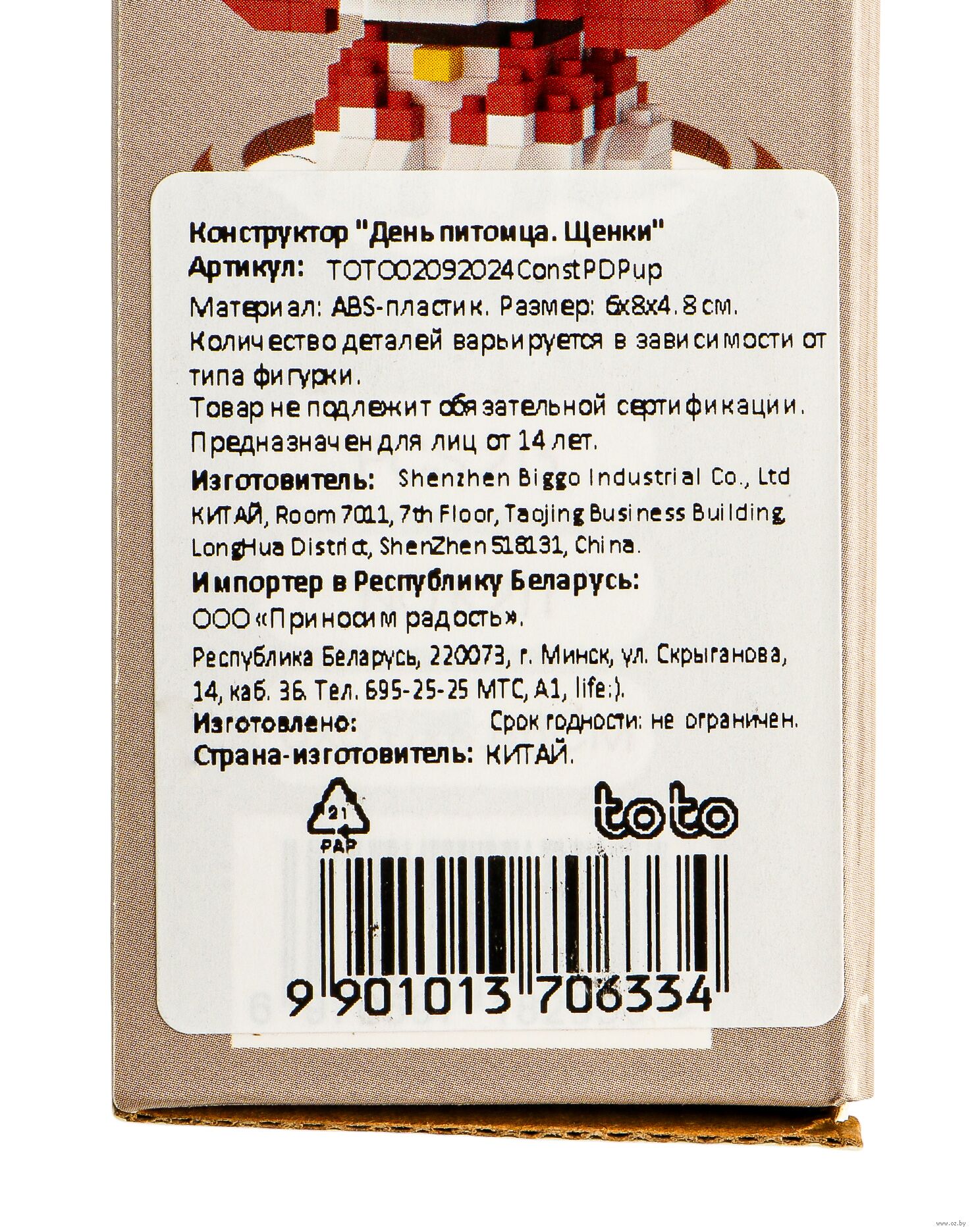 | Импортер | ООО «Приносим радость», 220073, г. Минск, ул. Скрыганова, д. 14, каб. 36. |