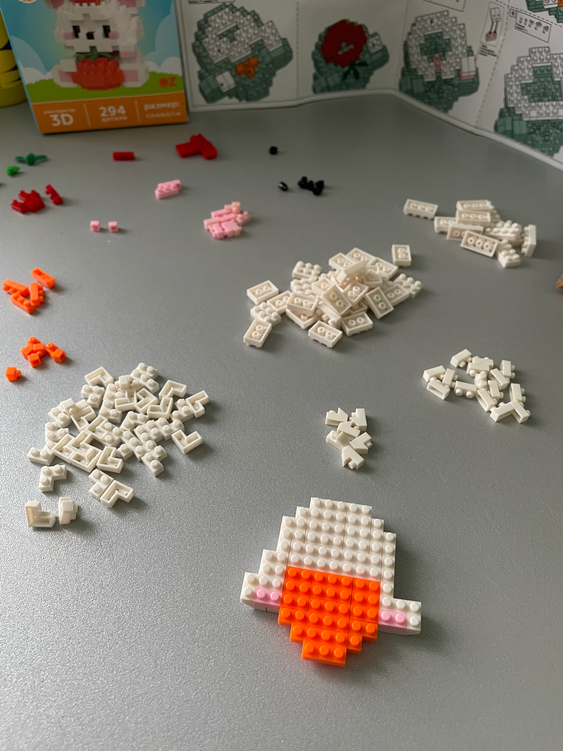 Классный конструктор, собирала 2 часа под сериал, в набор входит такая вспомогательная штучка с помощью которой удобно разъединять детальки при необходимости, еще осталось много запасных деталей