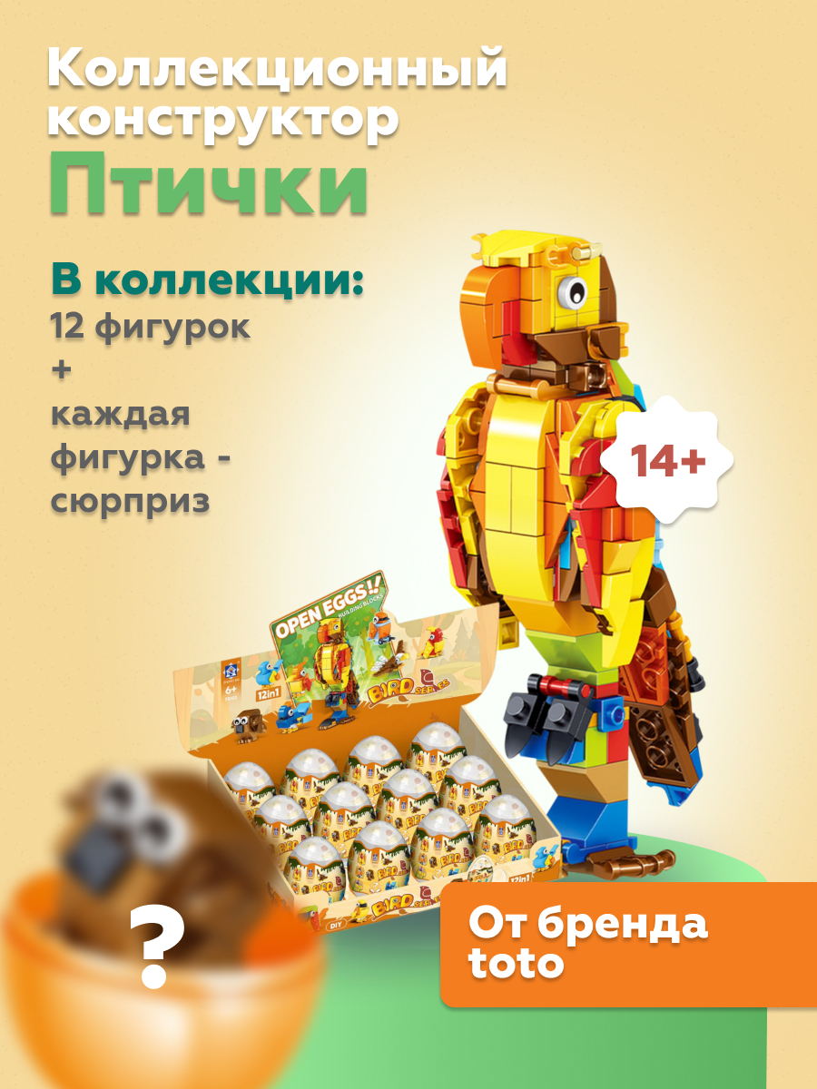 Этот набор включает в себя разнообразные детали для сборки милой маленькой птички. Каждая птичка – уникальная и яркая, и с помощью инструкции вы сможете легко её собрать. А если собрать все 12 птичек, то по специальной инструкции, у вас получится великолепный большой попугай – яркий и красочный символ дружбы и творчества! Отличный выбор для развития фантазии, мелкой моторики и любознательности.