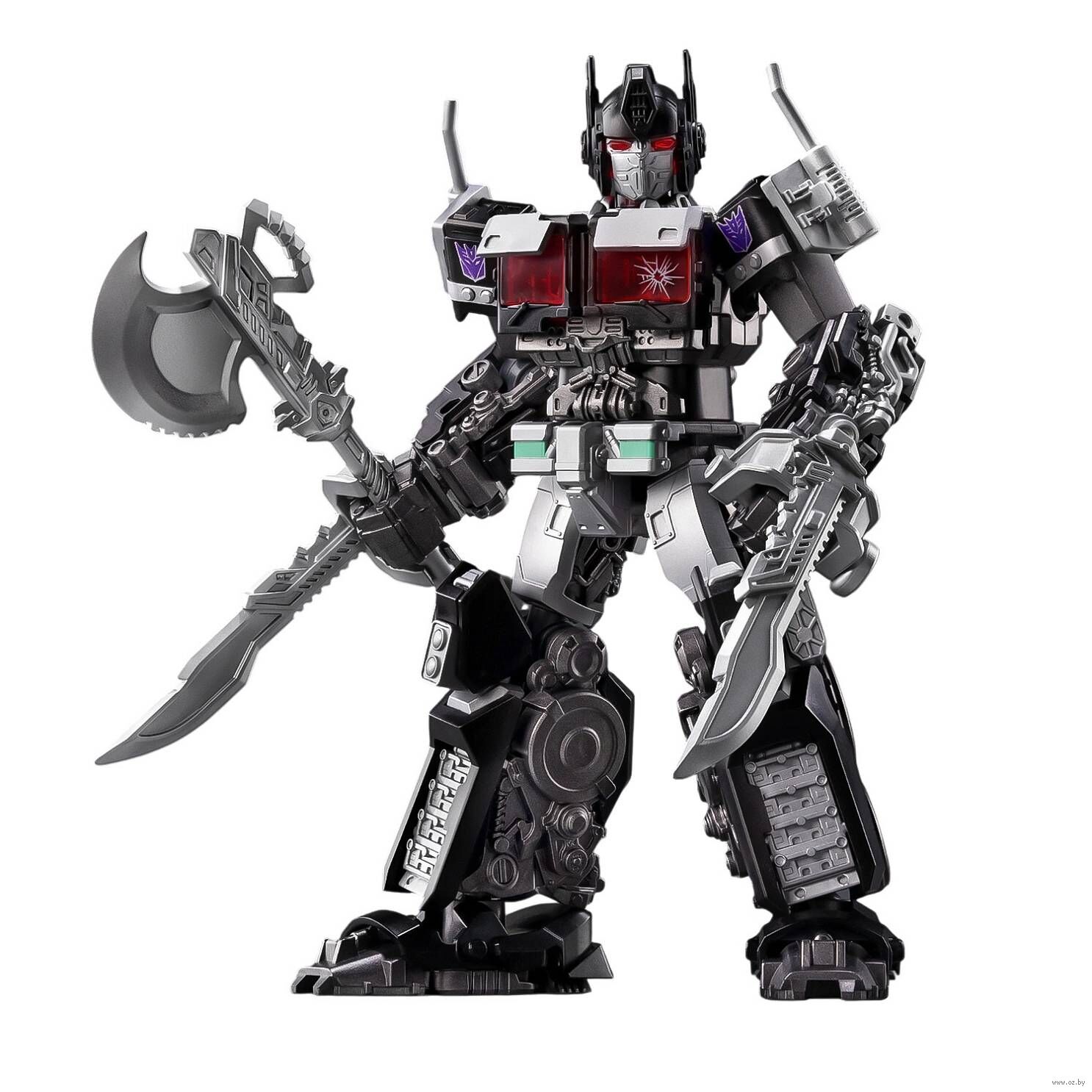 Немезис Прайм – злой клон Оптимуса Прайма, первый трансформер, созданный на Земле. Внешне он полностью идентичен лидеру Автоботов, но выполнен в мрачных цветах. Потряси Трансформера и зажги Великую Искру!