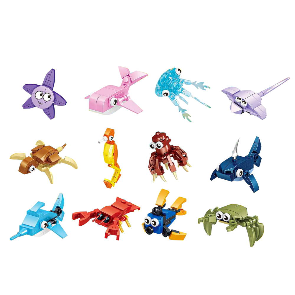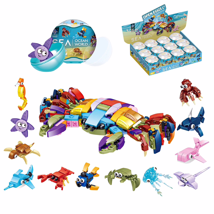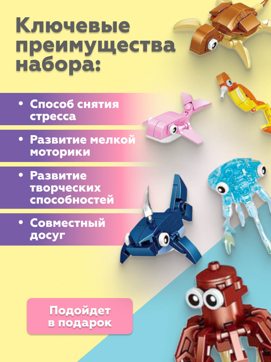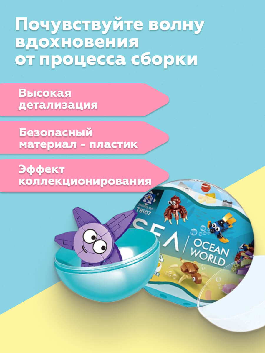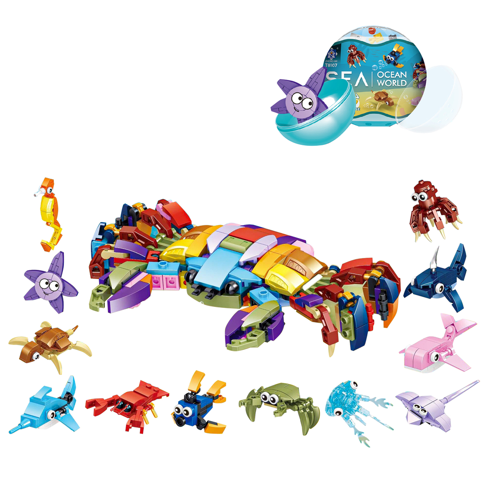 Этот набор включает в себя 12 шаров, из деталей которых можно собрать разнообразных морских существ – рыб, рачков, медуз и других обитателей океана. Каждая фигурка уникальна и яркая, а с помощью инструкции вы с лёгкостью её соберёте. А если соединить все 12 фигурок по специальной инструкции, у вас получится большой красочный краб – символ морских приключений! Отличный выбор для развития фантазии, моторики и интереса к морскому миру.