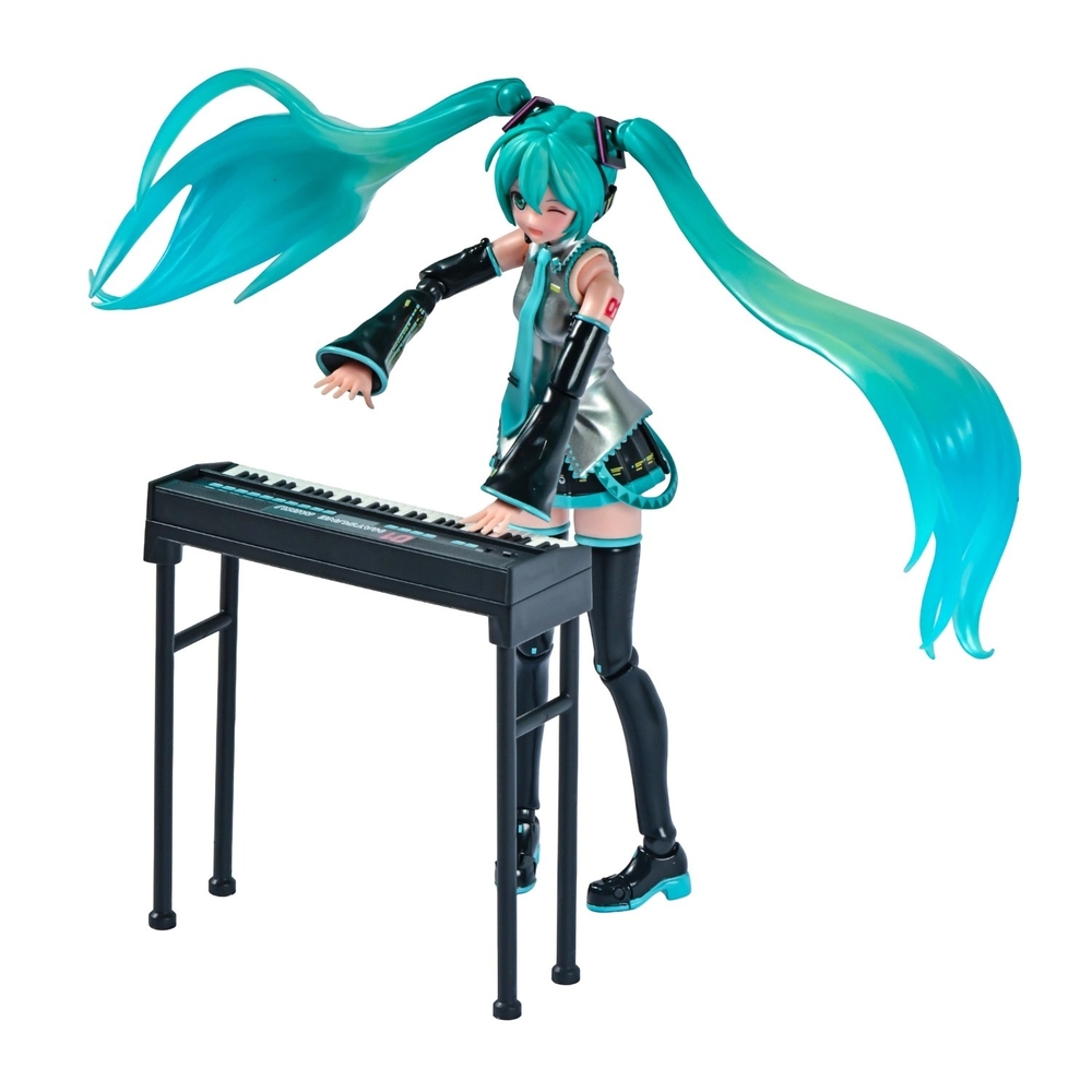 Подвижные детали позволяют придавать фигурке разные позы, а наклейки со сменным выражением лица помогают передать любое настроение. Используй подставку из набора, чтобы разместить Хатсуне Мику в коллекции или создать собственную музыкальную сцену!