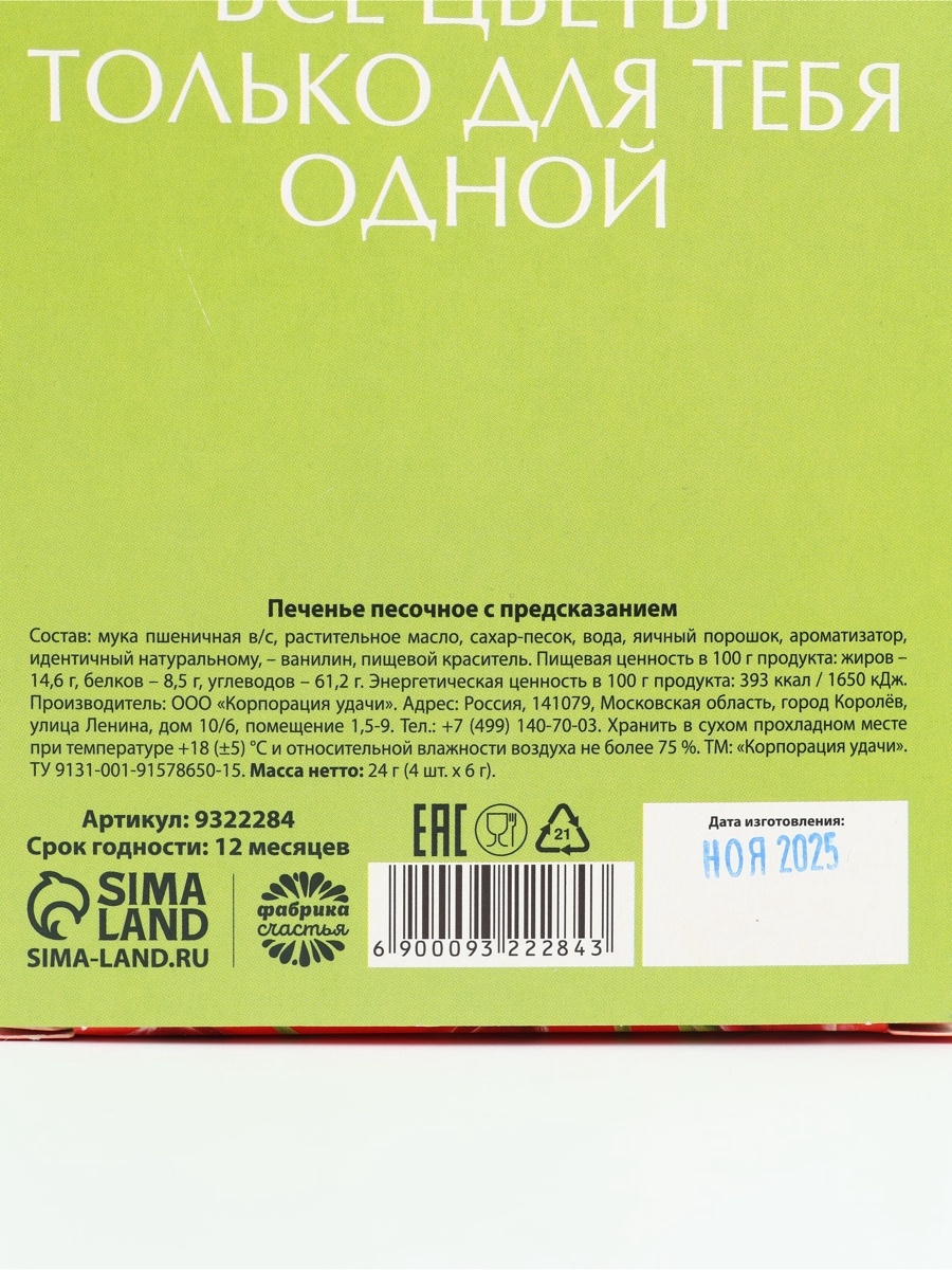 | Изготовитель | ООО "Фабрика счастья", 191023, г. Санкт-Петербург, ул. Караванная, 1,литера а, помещ. 54-н помещ. оф. 3 ком. № 20 |