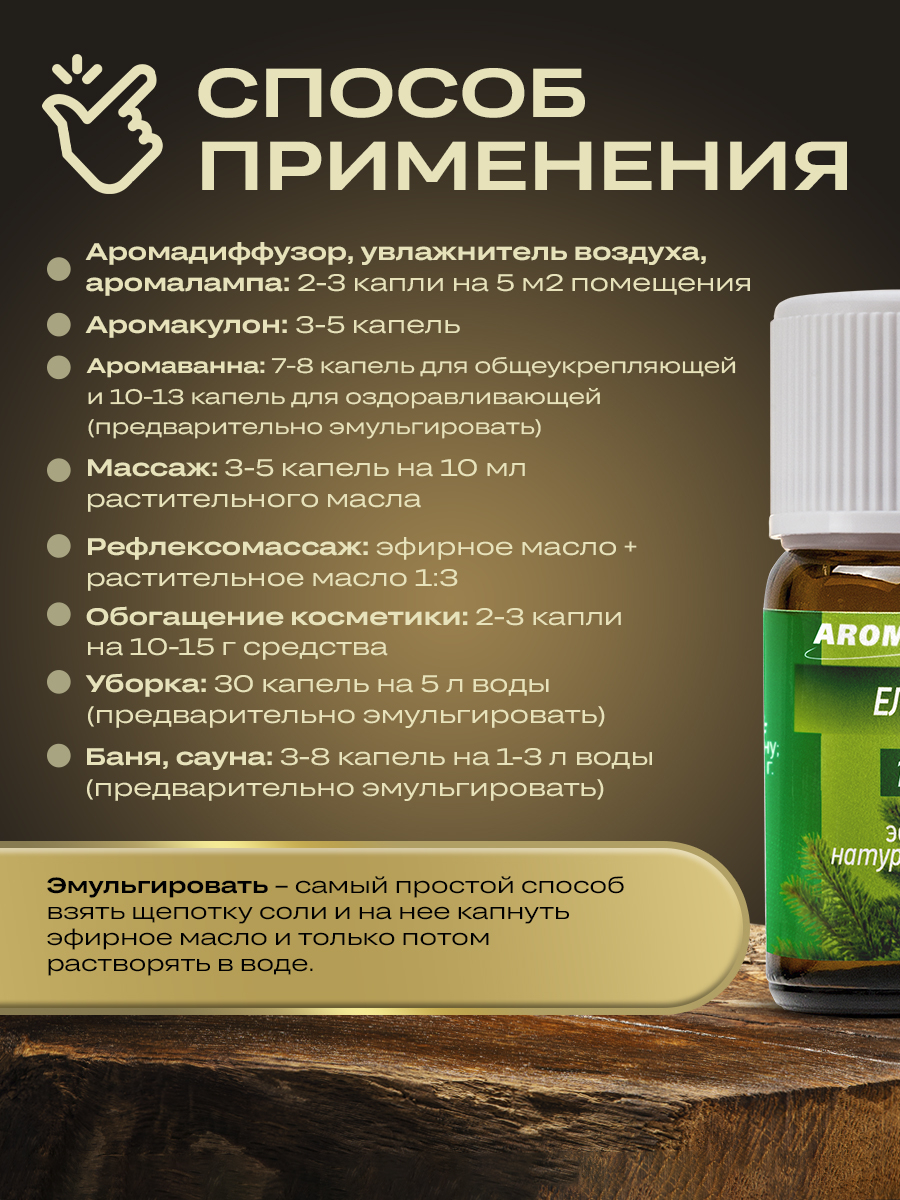 Аромакулон: 3-5 капель масла или смеси масел налейте в аромакулон и носите на шее в течение дня.