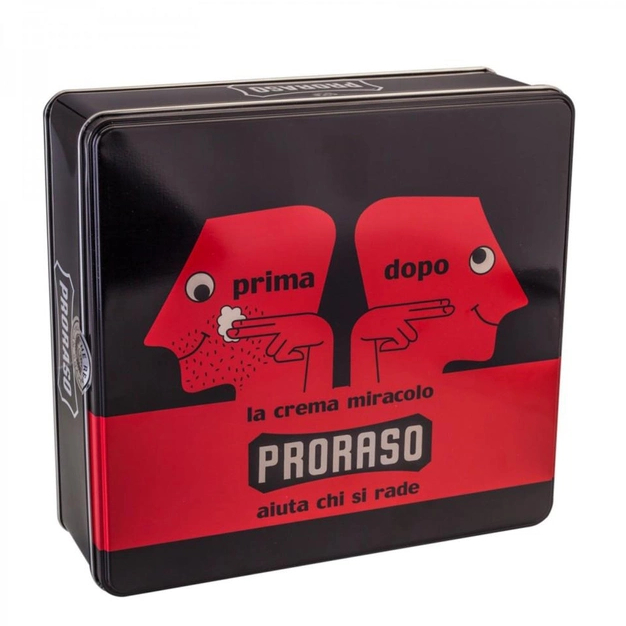 Рекламные изображения Proraso являются легендарными, как и их продукты для бритья. История Proraso представляет собой синоним качества в мире косметики для бритья в течение почти столетия. Данный набор был выпущен в ретро стиле с изображением одной из картин Proraso, взятой из архива рекламных изображений 1950-х годов, дань истории Proraso.
