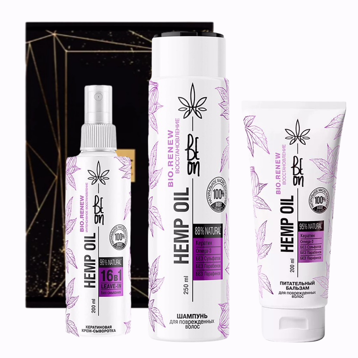 Подарочный набор "Hemp Oil №10 Восстановление" (шампунь, бальзам, крем-спрей)