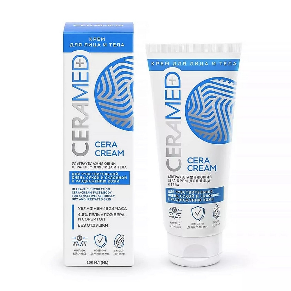 "Цера-Крем для лица и тела серии Церамед "Ультраувлажняющий", 100 мл. Образ жизни, внешние факторы, состояние здоровья влияют на дегидратацию кожи. Увлажненная кожа обеспечивает защитную (барьерную) функцию организма. Поэтому так важно поддерживать необходимый уровень увлажнения. Недостаток влаги становится причиной сухости, дискомфорта и потери эластичности.