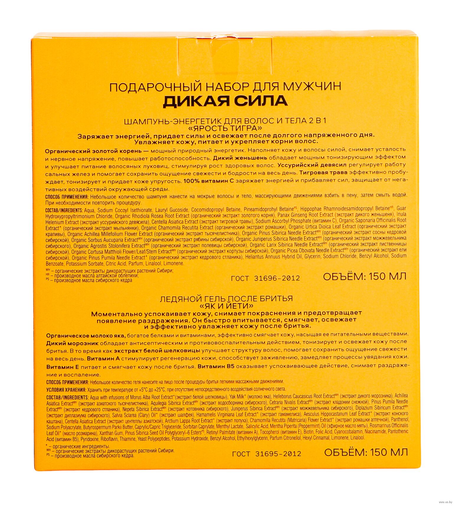 | Изготовитель | ООО «Натура Сиберика», Россия, г. Москва, ул. Зюзинская, д. 6 корп. 2, пом xv ком 26, 117418 |