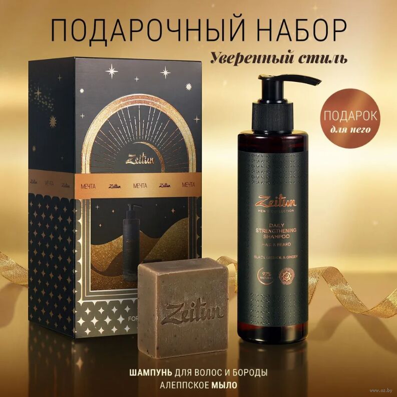 Подарочный косметический набор для тела "Уверенный стиль" от Zeitun – это идеальный выбор для мужчин, которым важен профессиональный уход за телом и волосами. В этот косметический бокс входят два средства: бессульфатный шампунь для роста волос и бороды и натуральное алеппское мыло с кофе. Этот подарочный набор косметики для мужчин поможет поддерживать ухоженный внешний вид, став отличным сюрпризом в особенную дату или без повода.