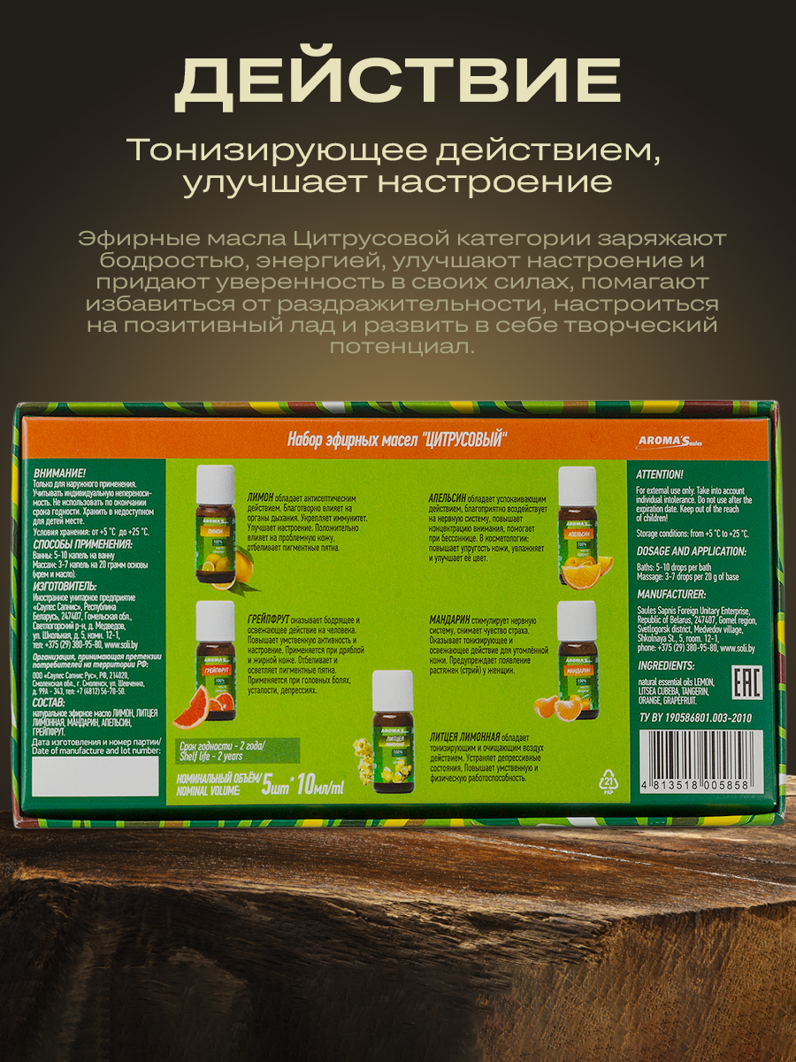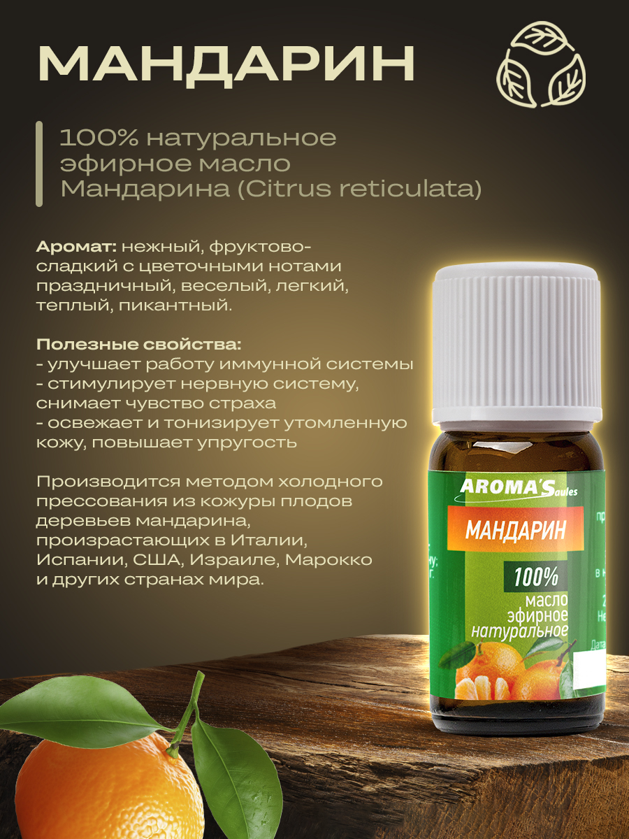 Натуральные эфирные масла бергамота, мандарина, апельсина, грейпфрута, лимона.